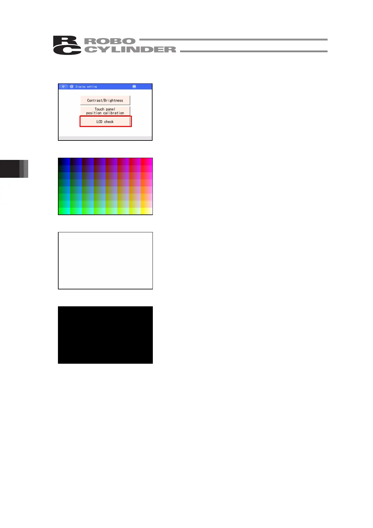 LCD display can be checked in the order of Color Pattern, White Only and Black Only.