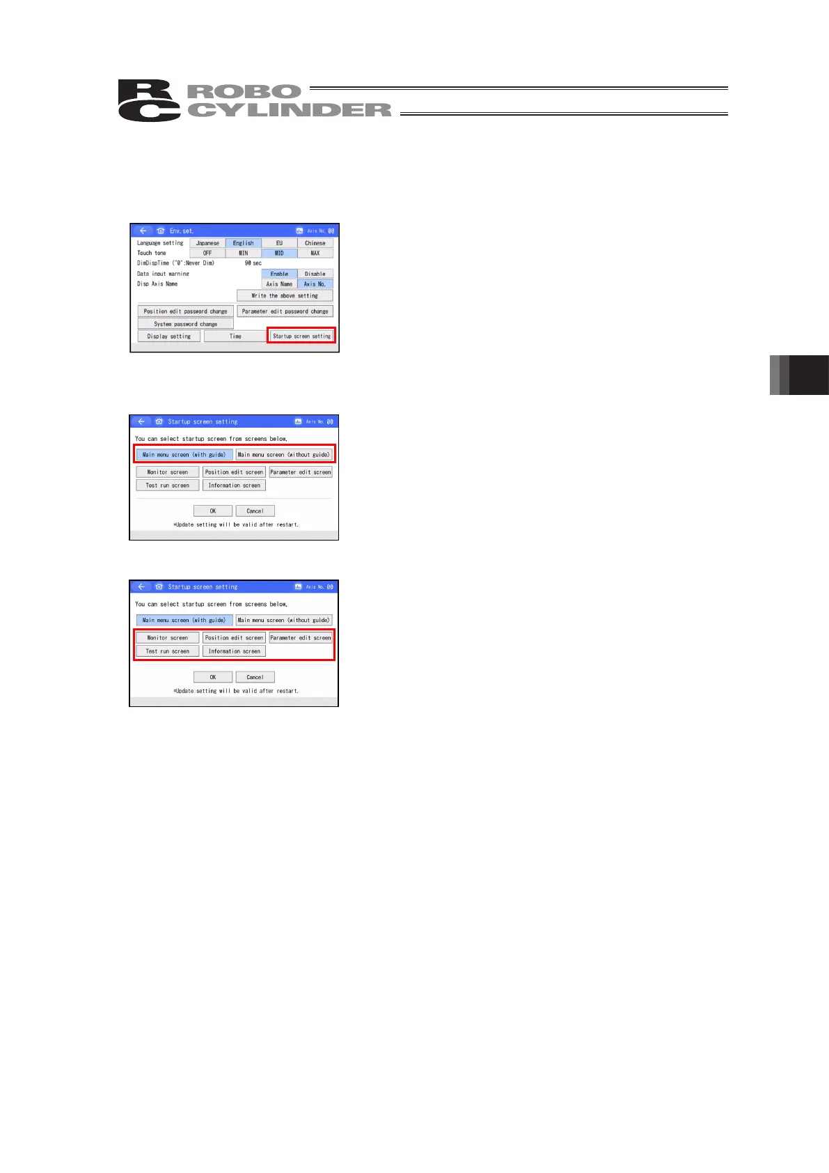 Setting can be established for the window shown in the screen first after the power is turned on.