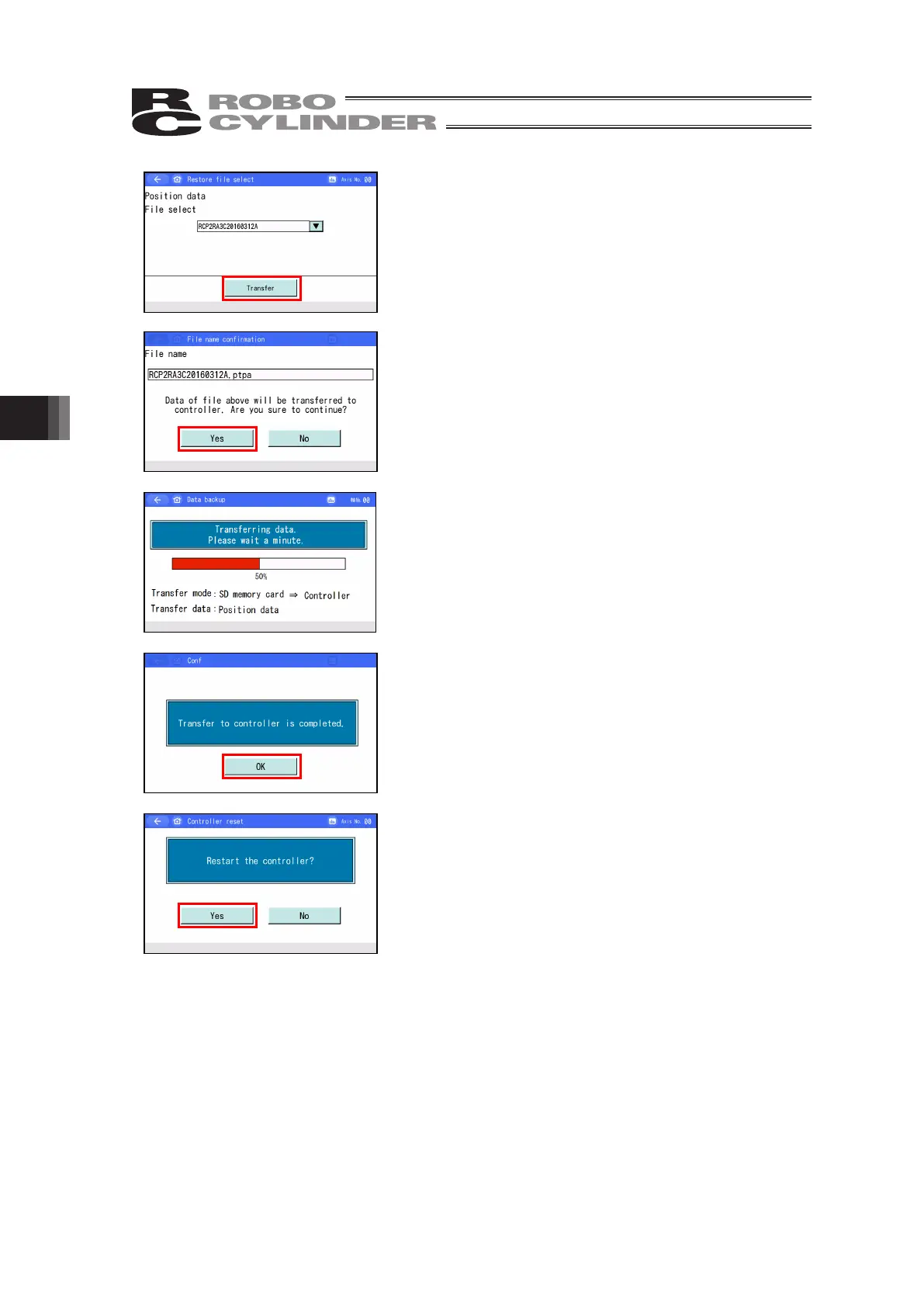 (Note) The controller reboot screen will not appear if there is no difference between the data in