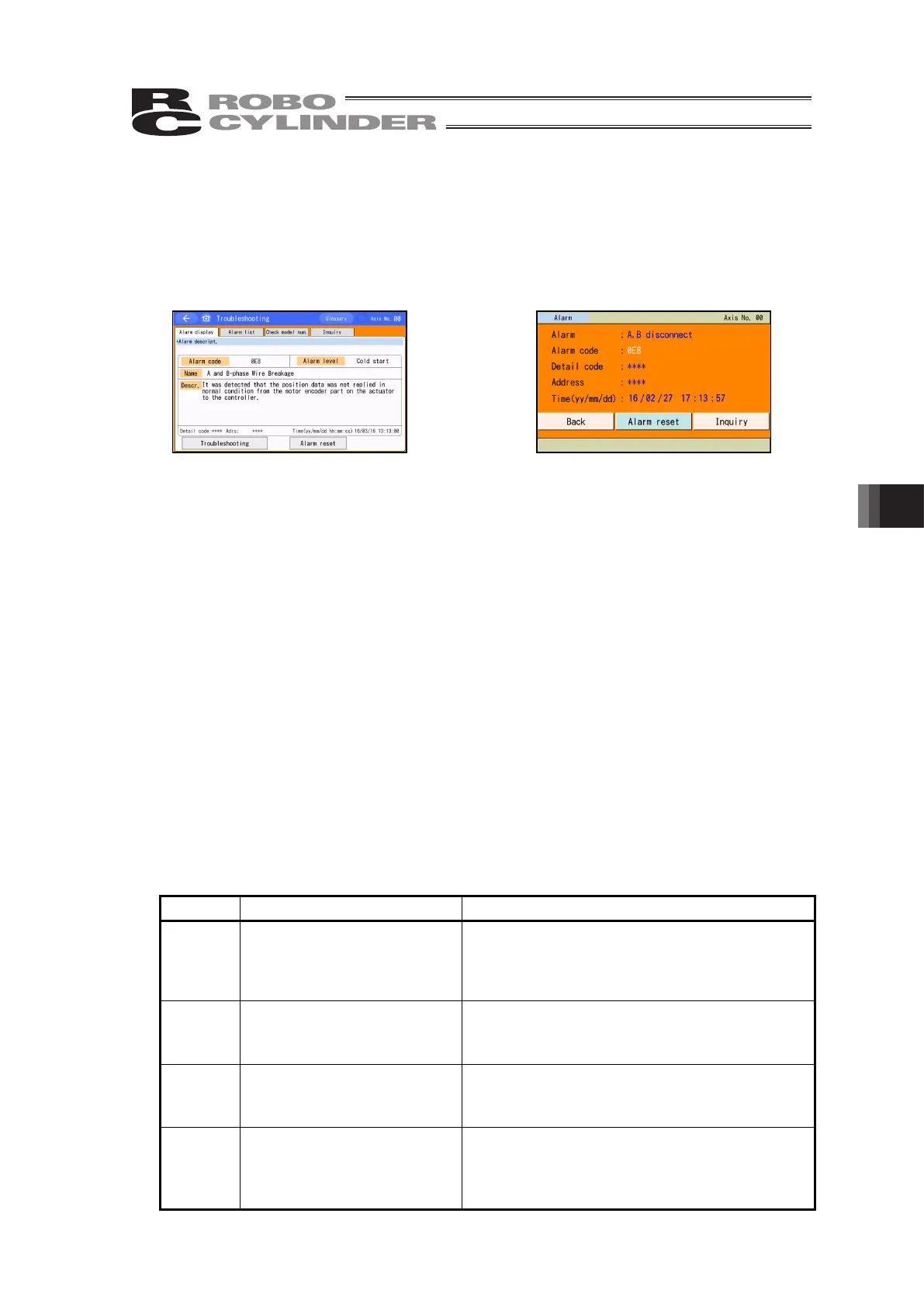 Alarms of codes 000 to 0FF are those detected by the controller.