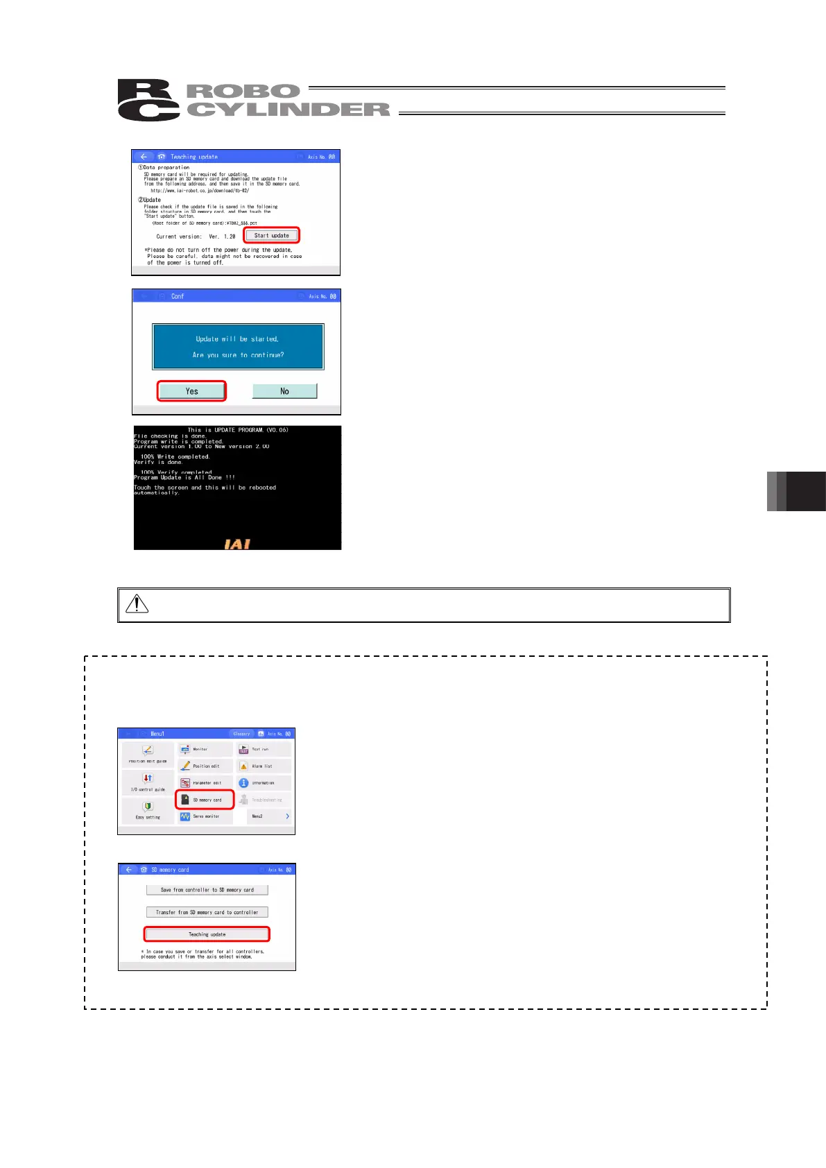 It is also available to perform by touching [SD Memory Card] → [Teaching update] in Menu 1