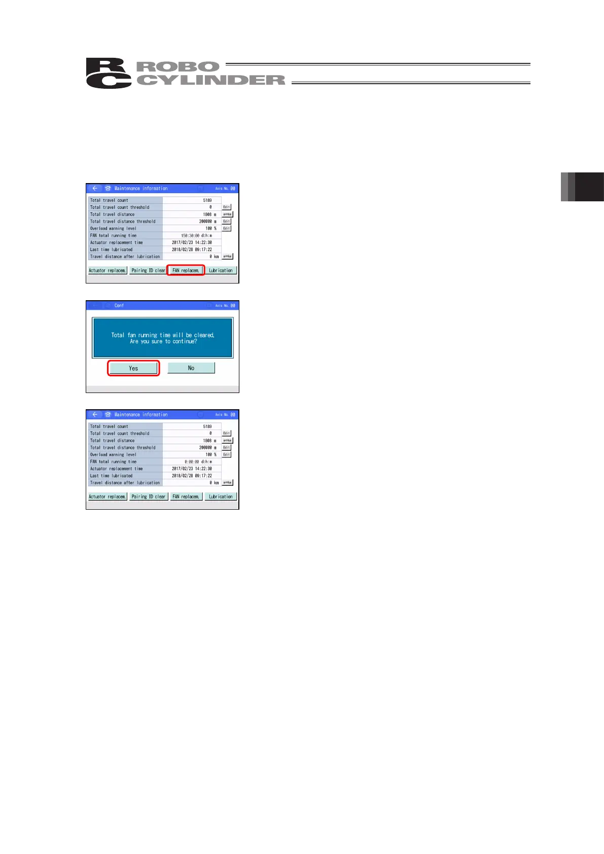 Shown below is how to reset the total fan operation time at the time of the fan replaced.