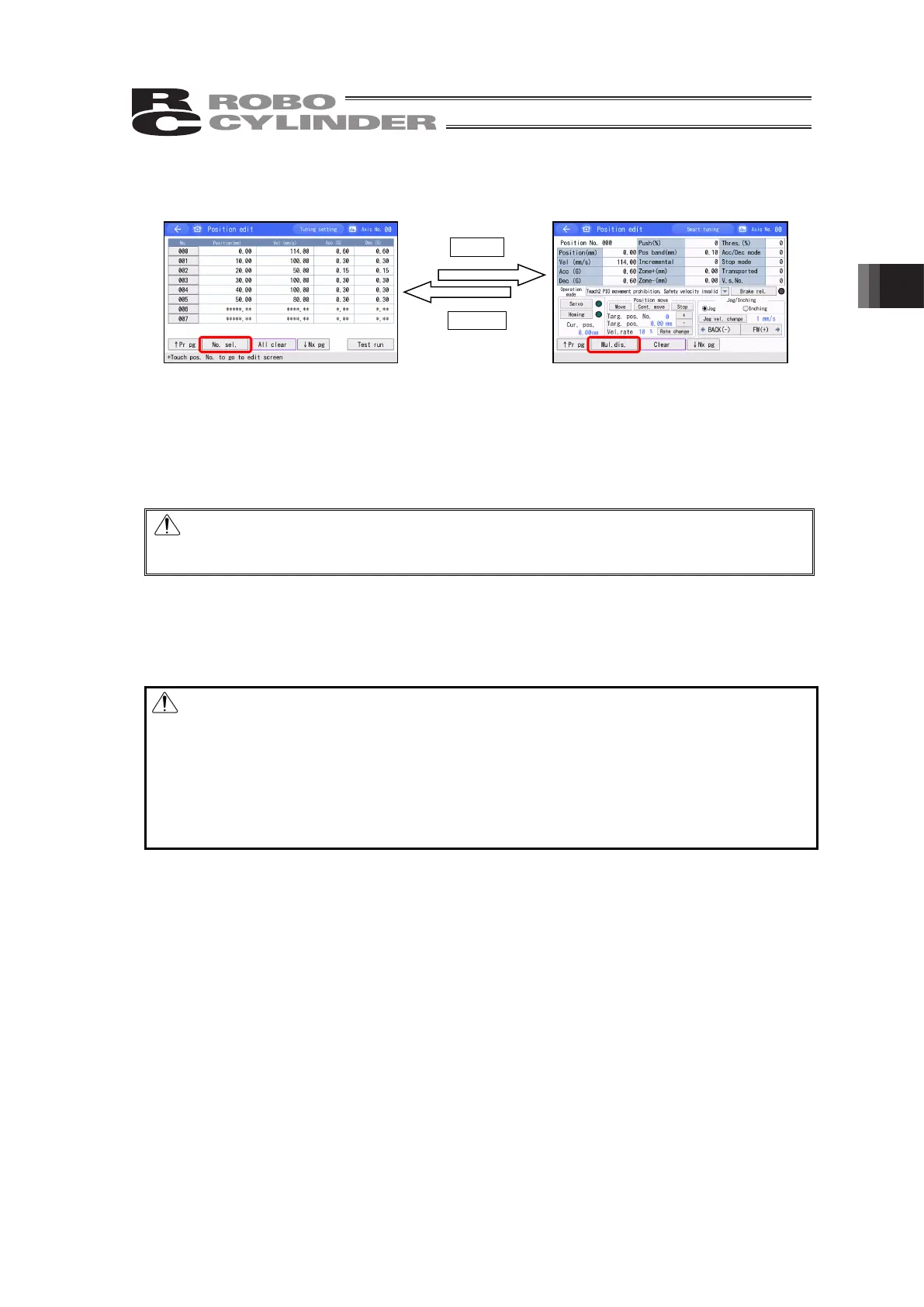 Caution: Operation with JOG Switch on Front Panel of RCON