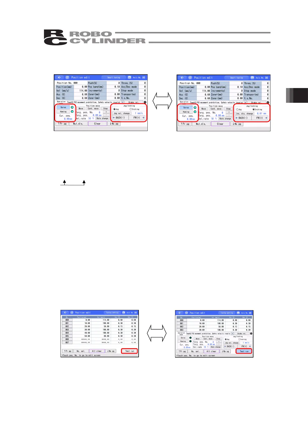 It is also available to perform JOG / Inching operation by touching [Test run] in the window of the