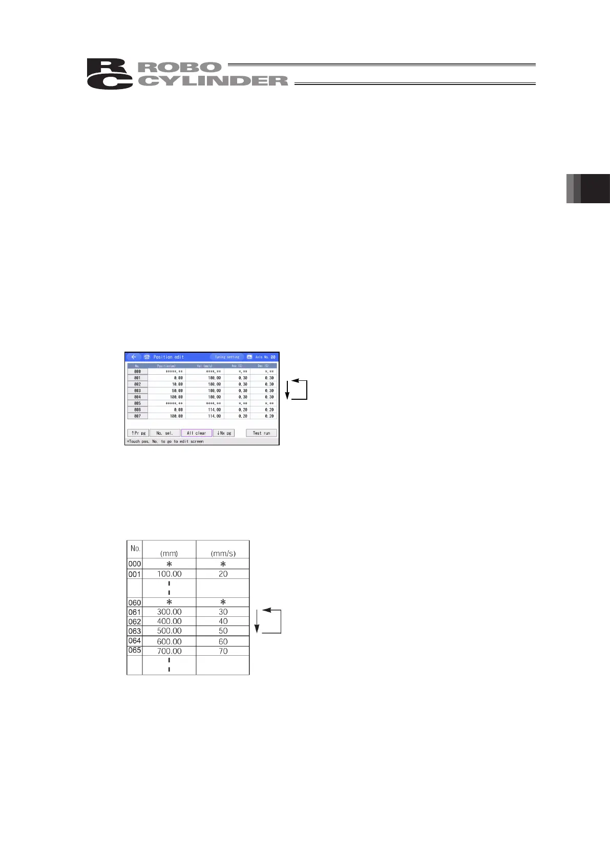 As shown in the example, the actuator returns to position No. 061 after No. 063 (returns to