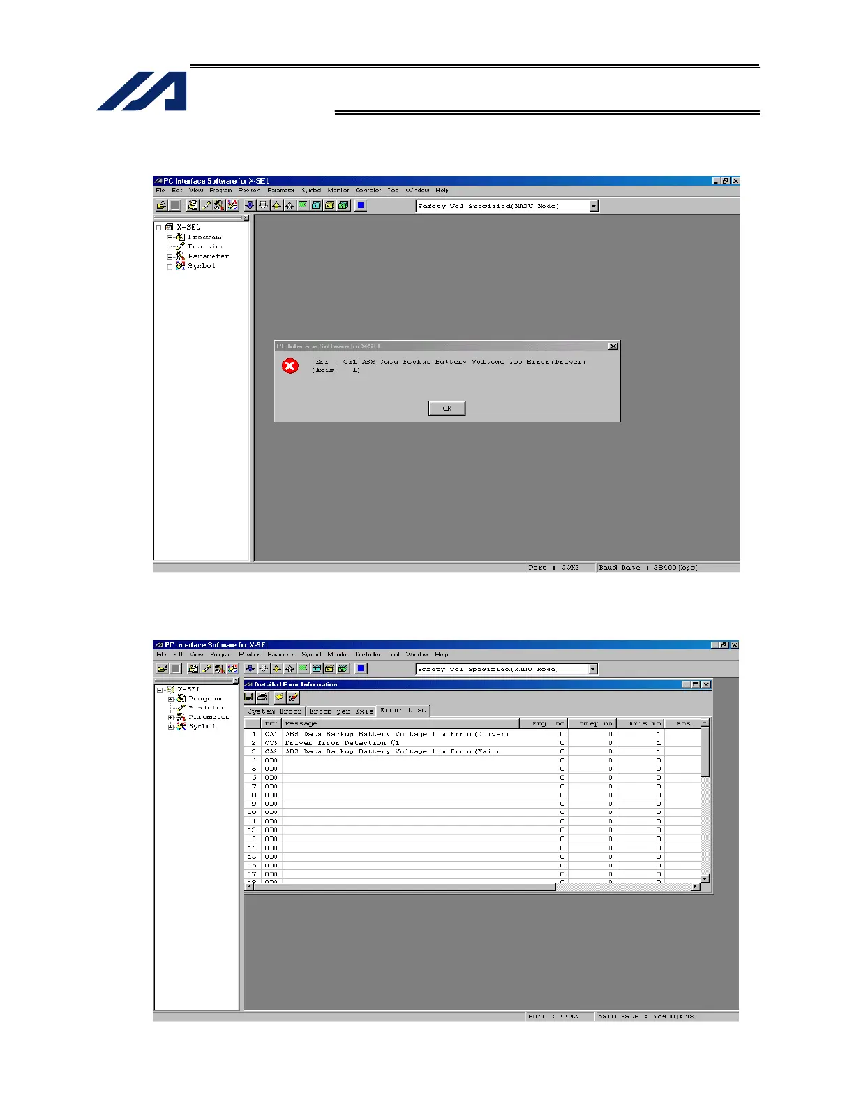 (6) The X-SEL PC software window will be displayed. Clicking the [OK] button will clear the error