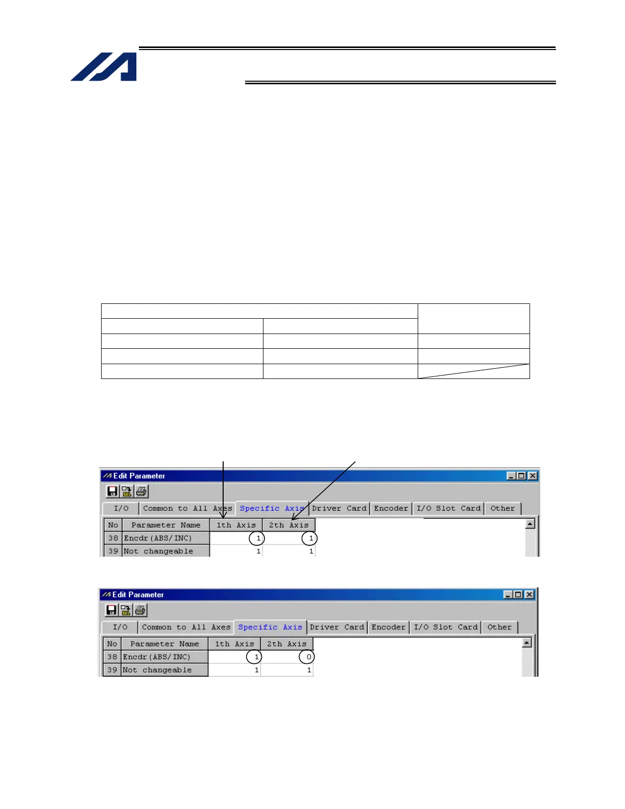 Values in “Axis-specific parameter No. 38, Encoder ABS/INC type”