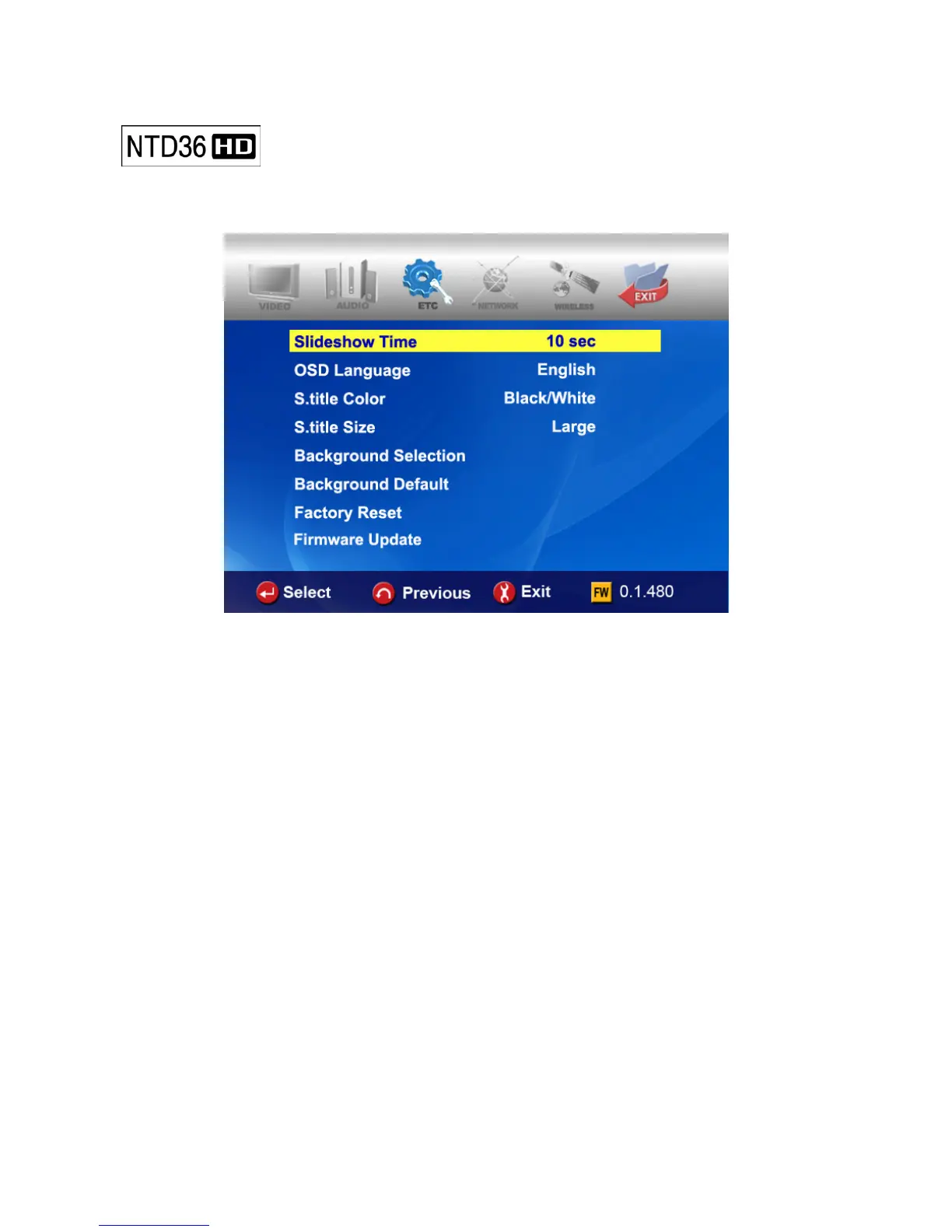 • Factory reset : To clear all values set by user and to initialize NTD36HD with values set