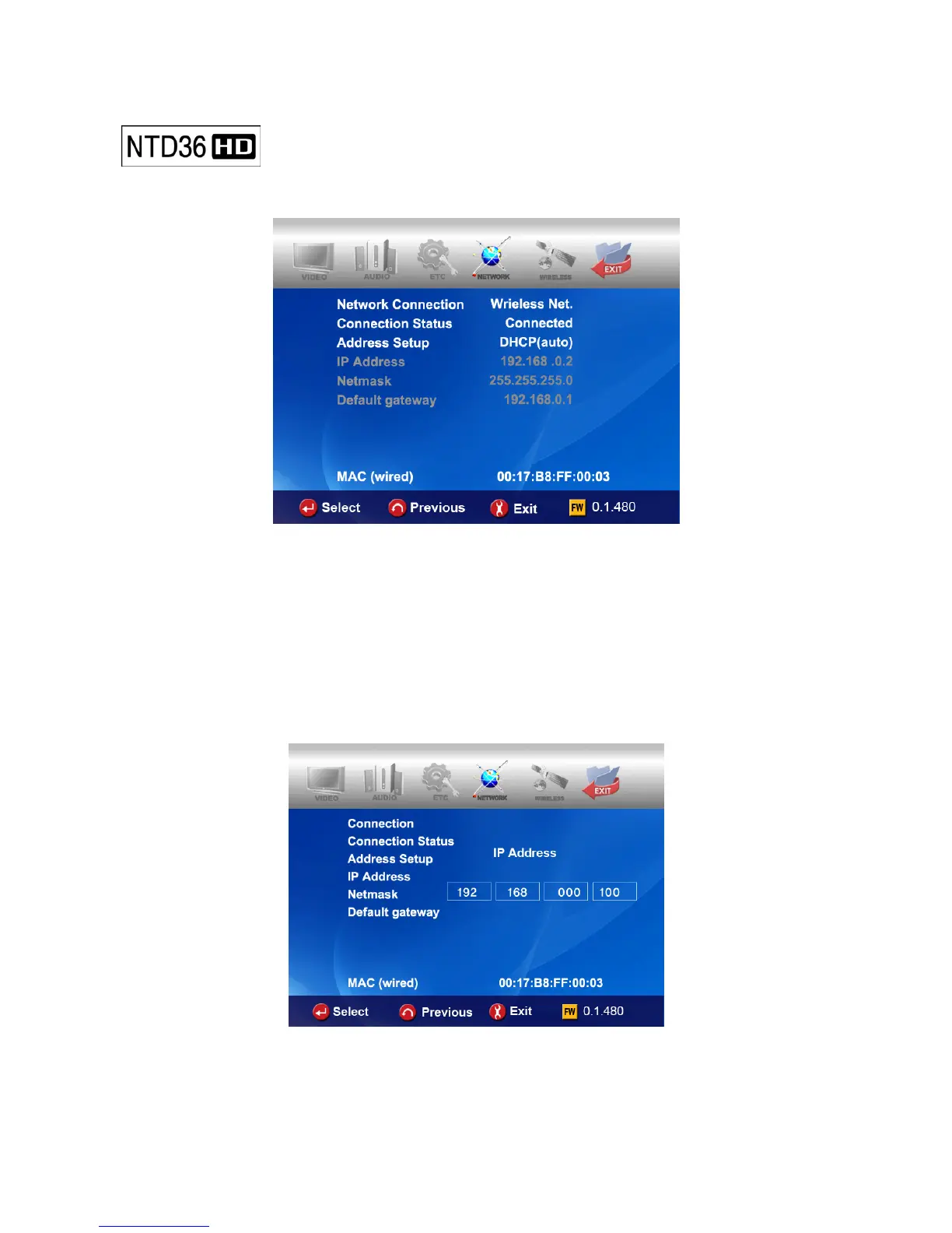 • Network Connection : Select either “Wired Net.” (for the Ethernet connection) or