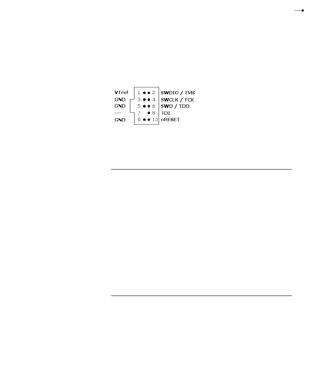 6 SWO/TDO Input JTAG data output from target CPU. Typically connected to