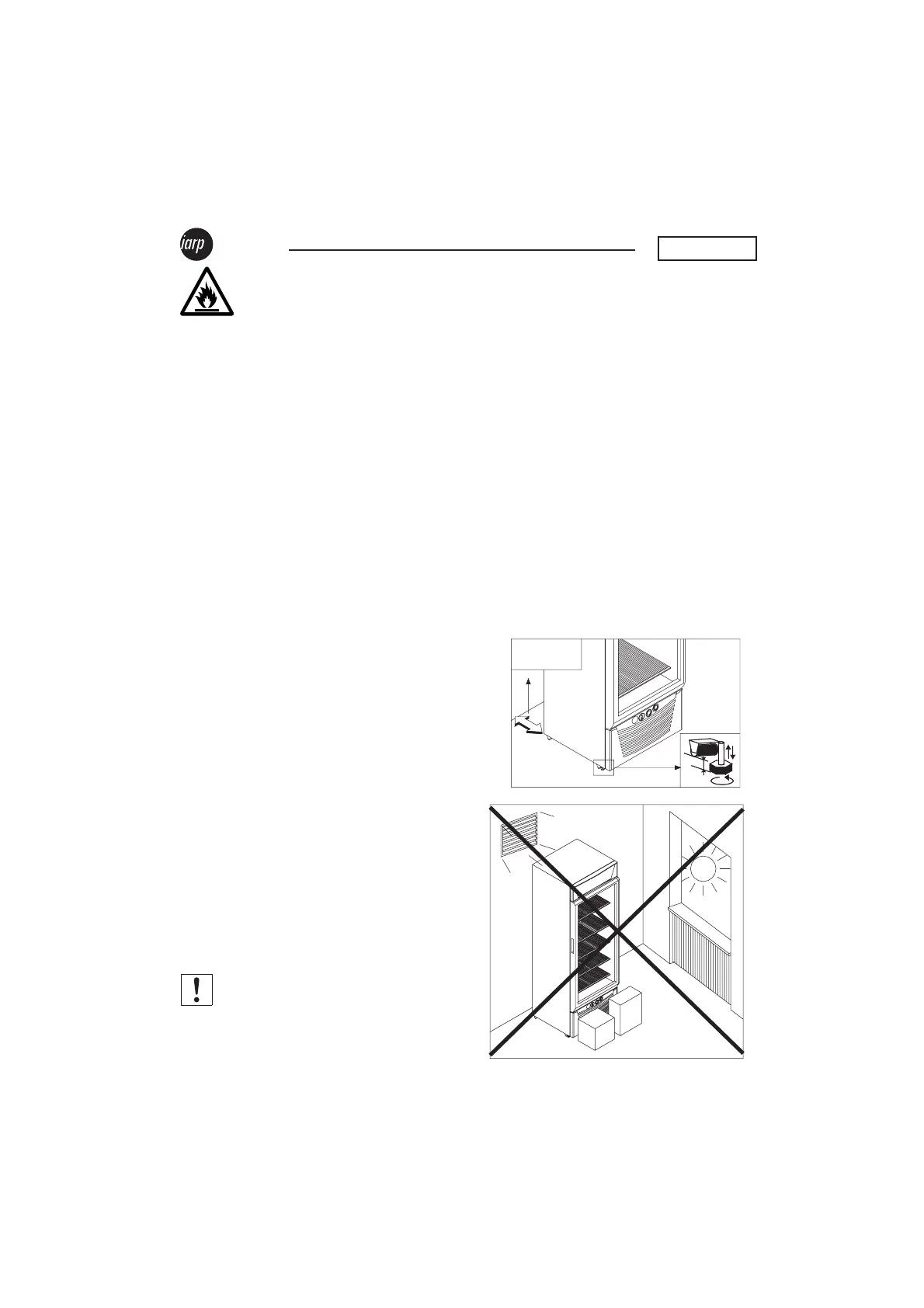 Füße regulieren) , und fern von Wärmequellen (Heizkörper,