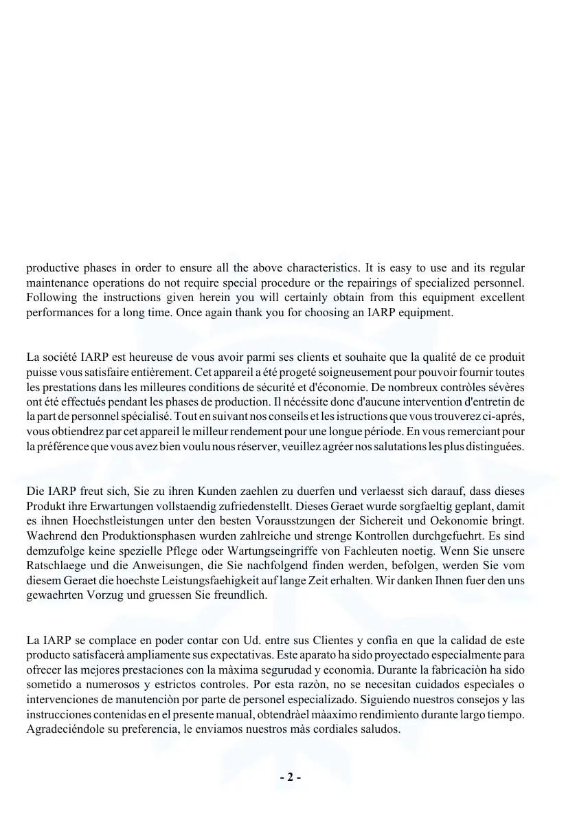 performances for a long time. Once again thank you for choosing an IARP equipment.