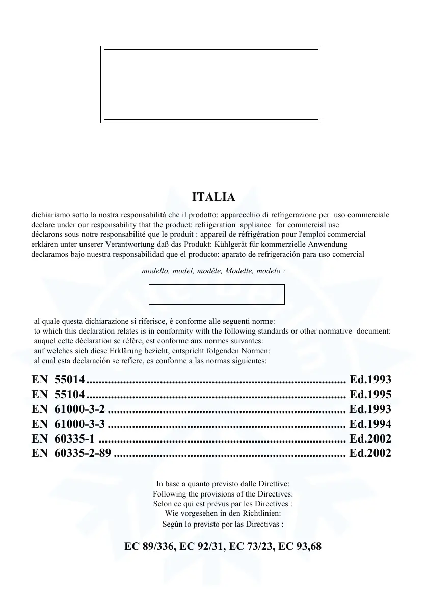 declare under our responsability that the product: refrigeration appliance for commercial use