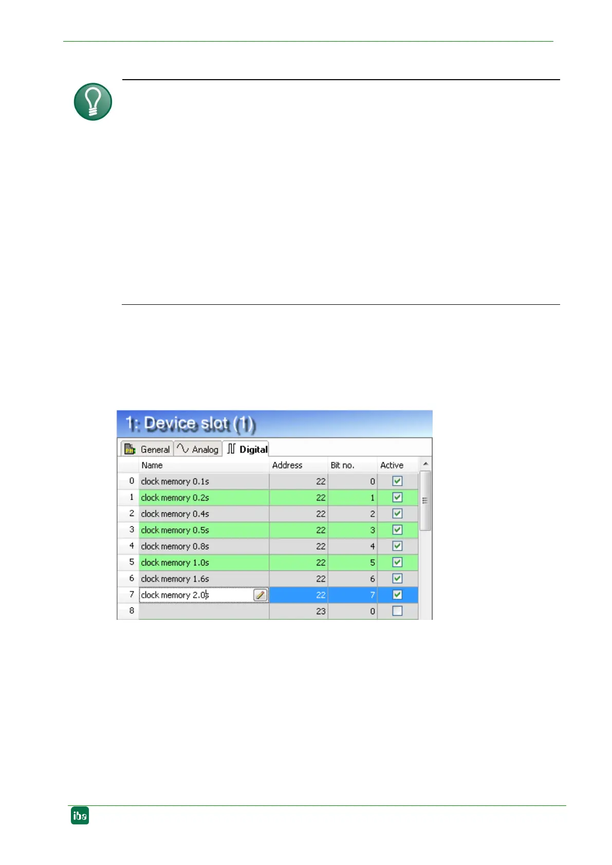 addressed via the bit numbers 0 to 7.