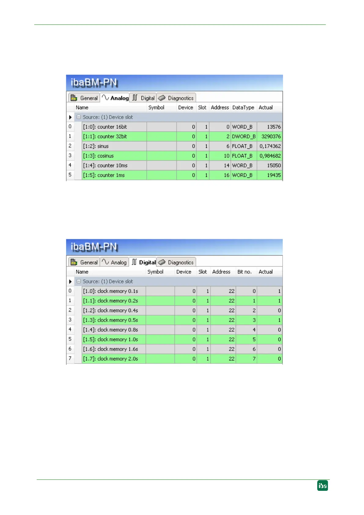has been transferred to ibaBM-PN, you will see here an overview of all acquired analog