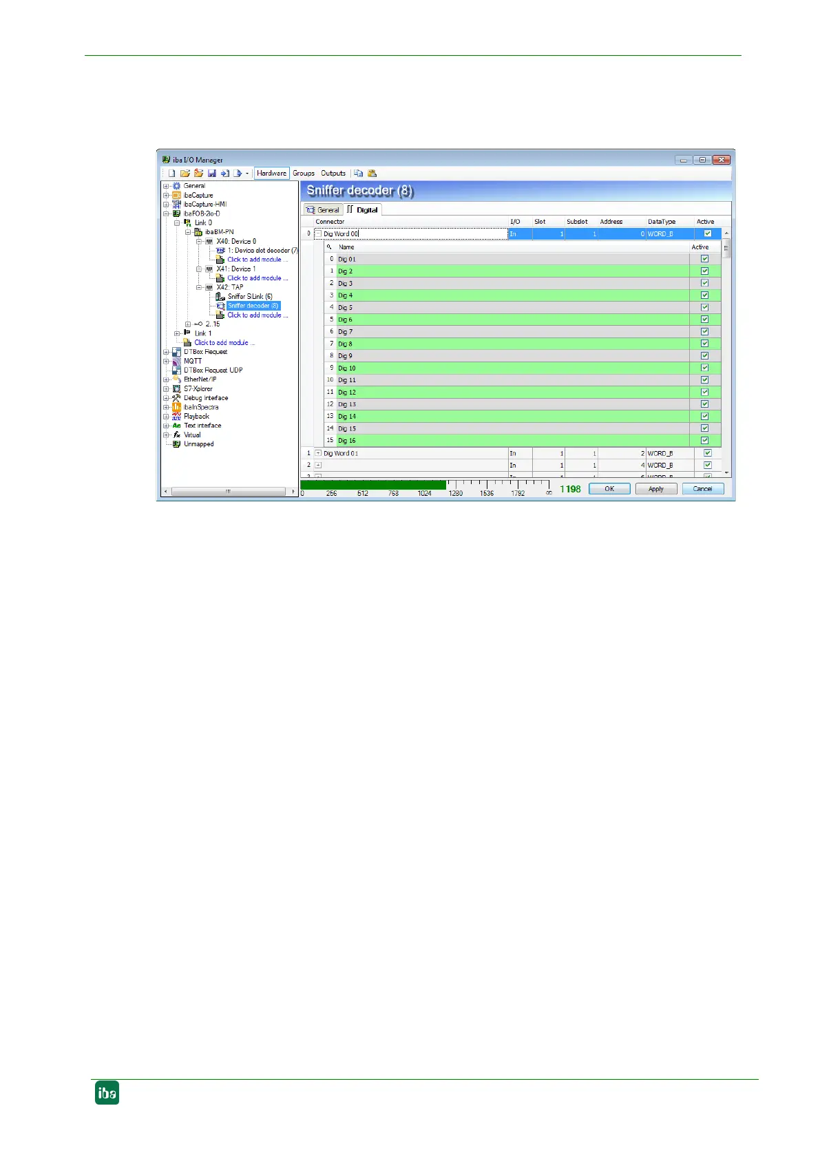 Figure 31: “Sniffer decoder” module – “Digital“ tab
