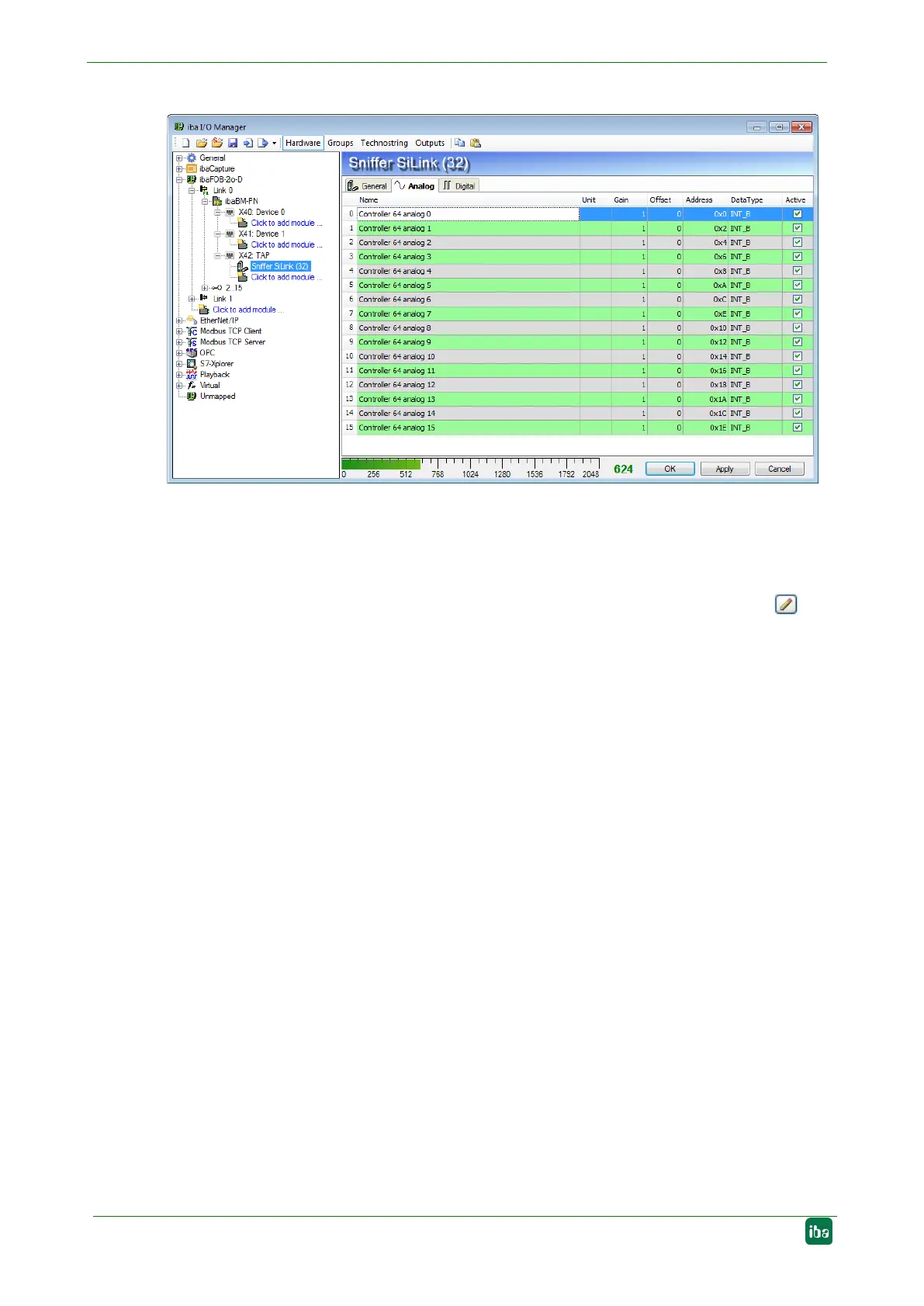 Figure 33: „Sniffer SiLink“ module – „Analog“ tab