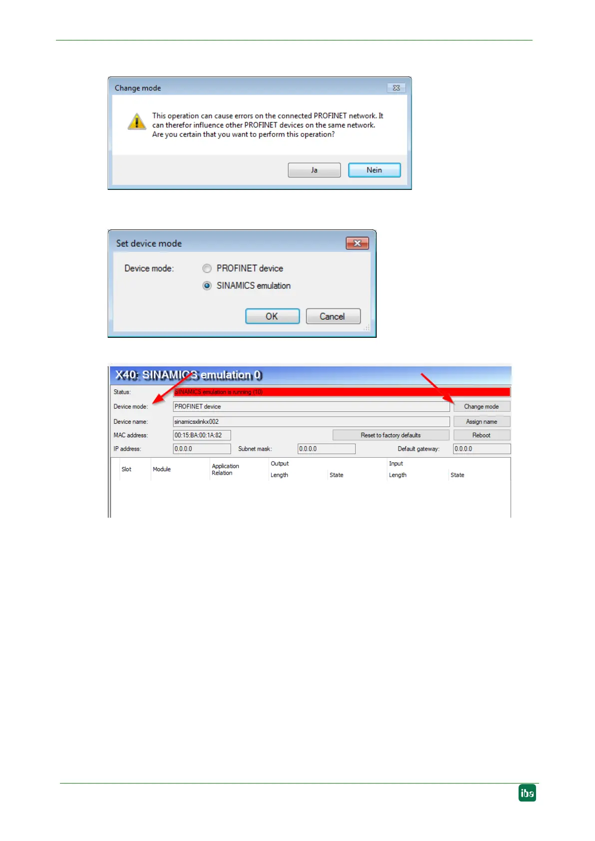 In the following dialog select the device mode “SINAMICS emulation” and confirm with