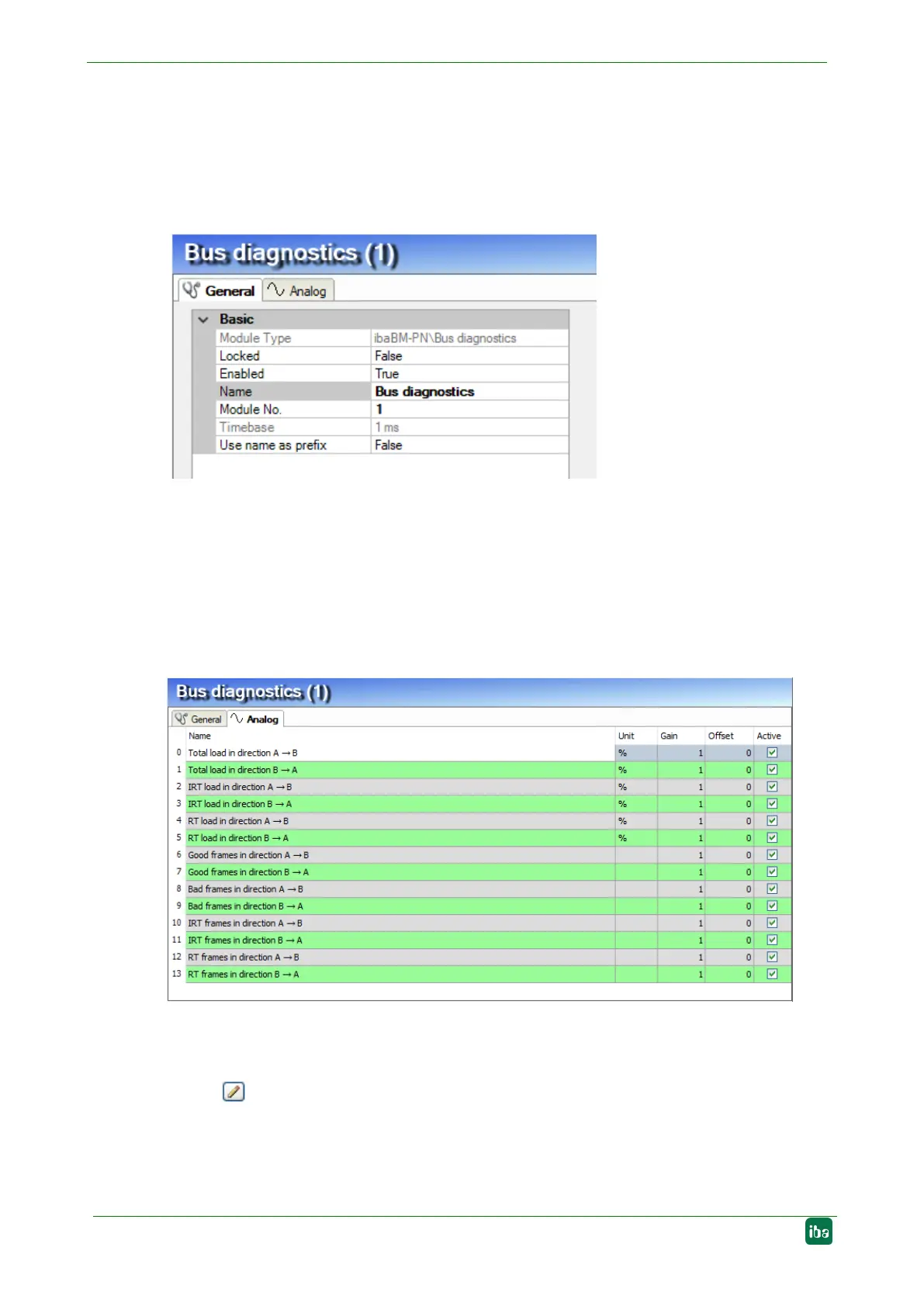 Figure 38: “Bus diagnostics” module, “Analog” tab