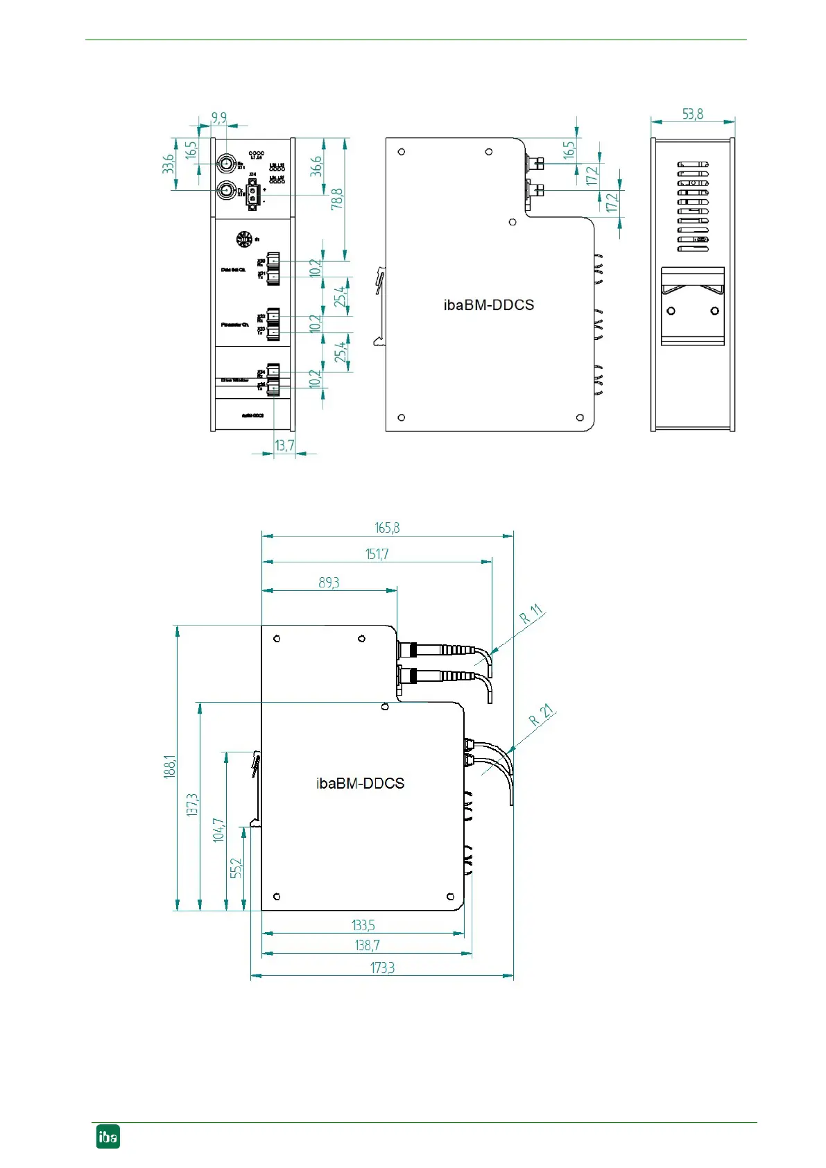 Figure 32: Dimension sheet ibaBM-DDCS with cables
