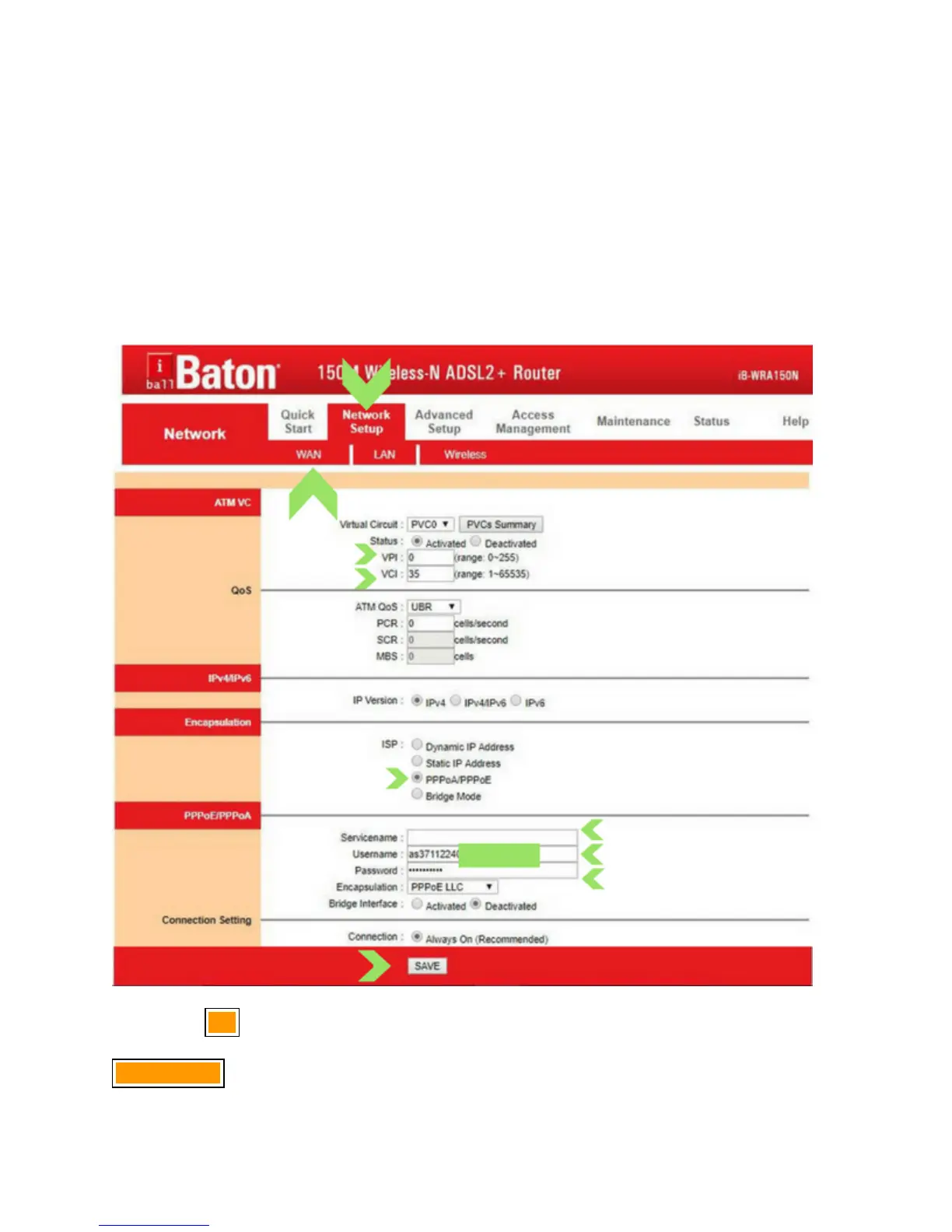 Now, look at the chart for VPI and VCI value of your ISP and put it on the respective