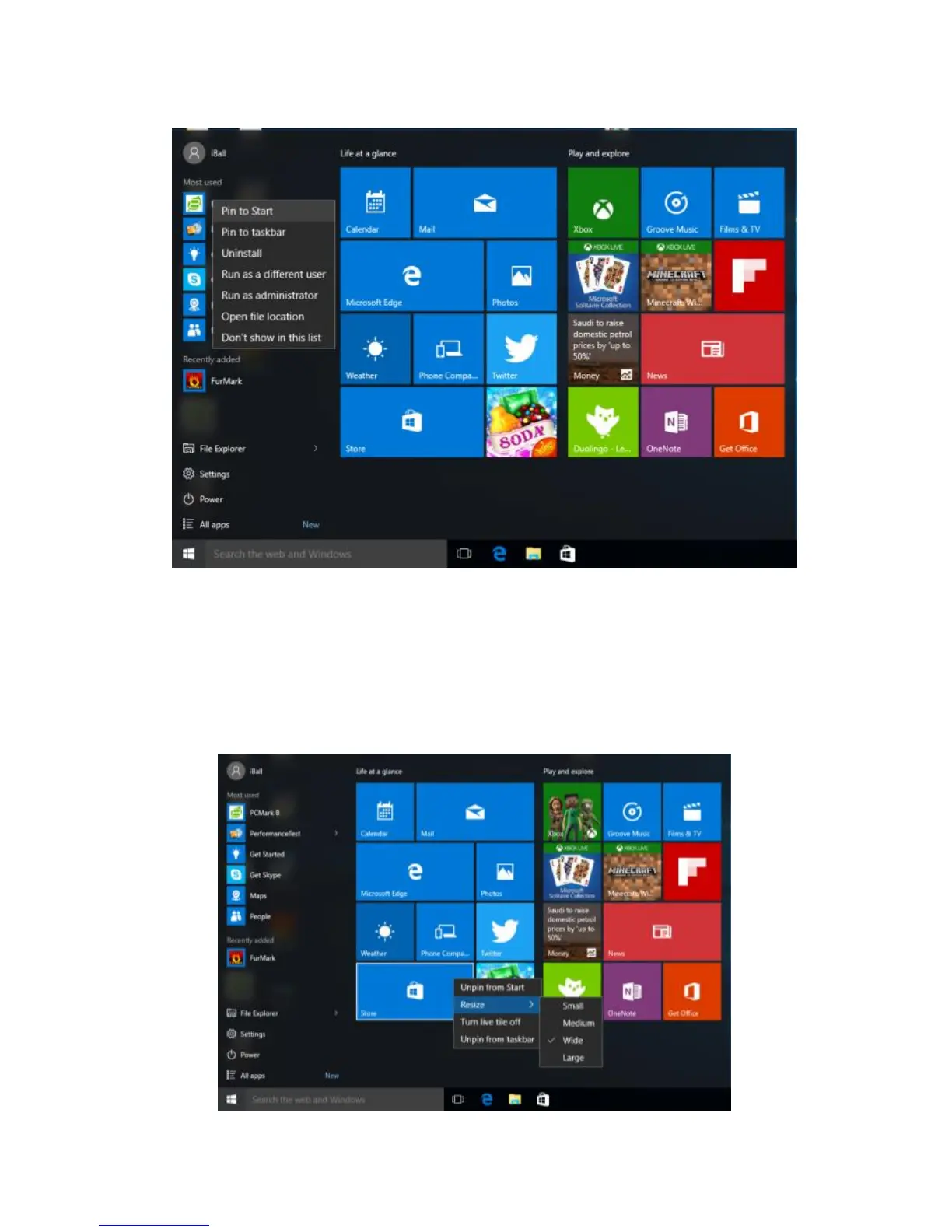 2. Select Unpin to delete or select the Resize option to change tile size.