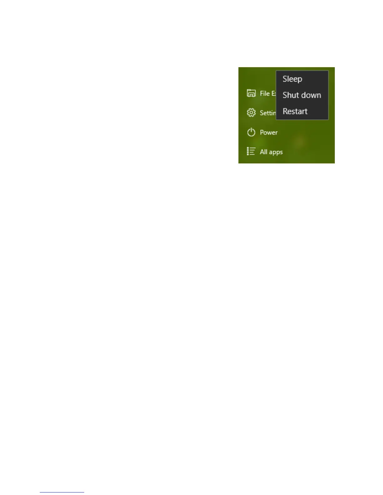 1. From the Start menu, click Power to