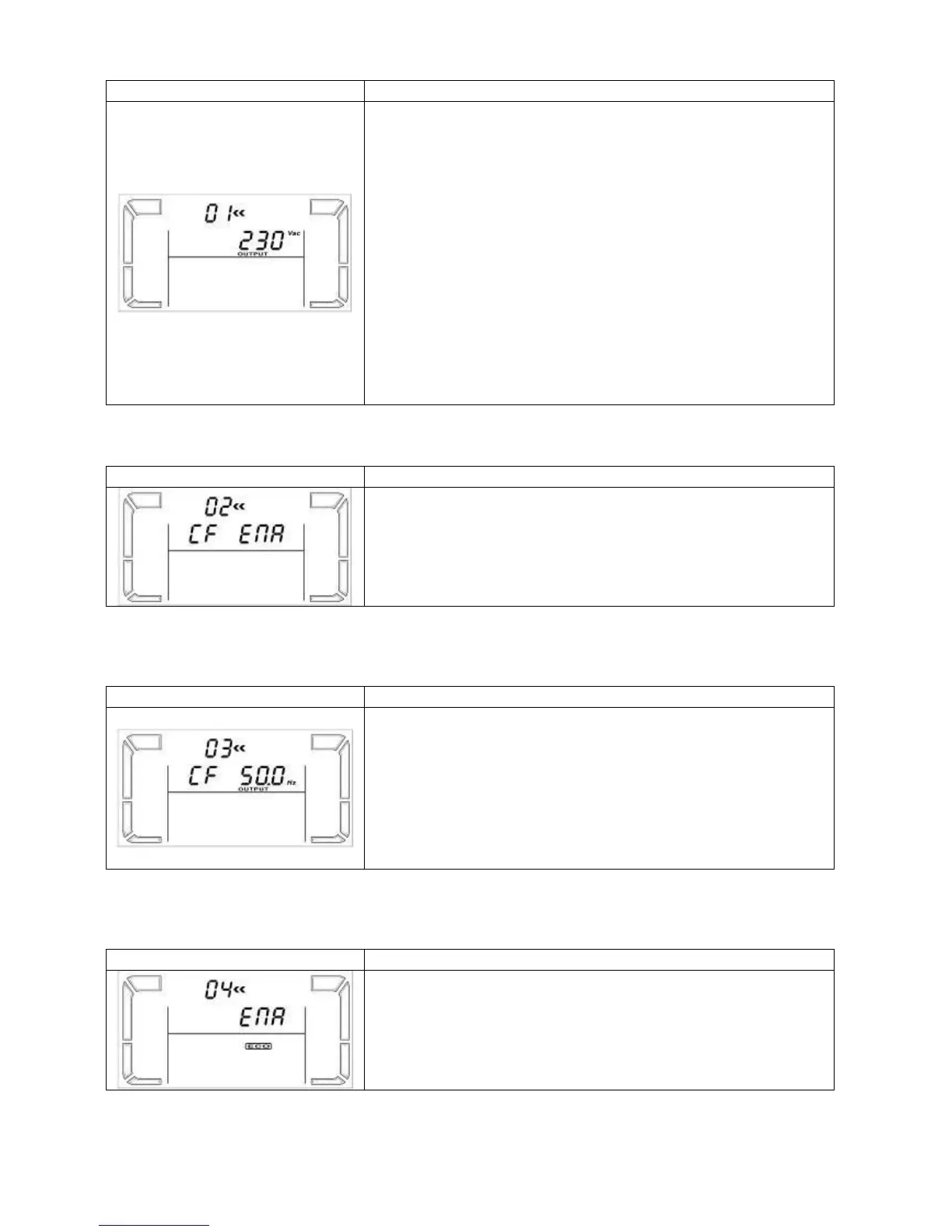 230: presents output voltage is 230Vac (Default)