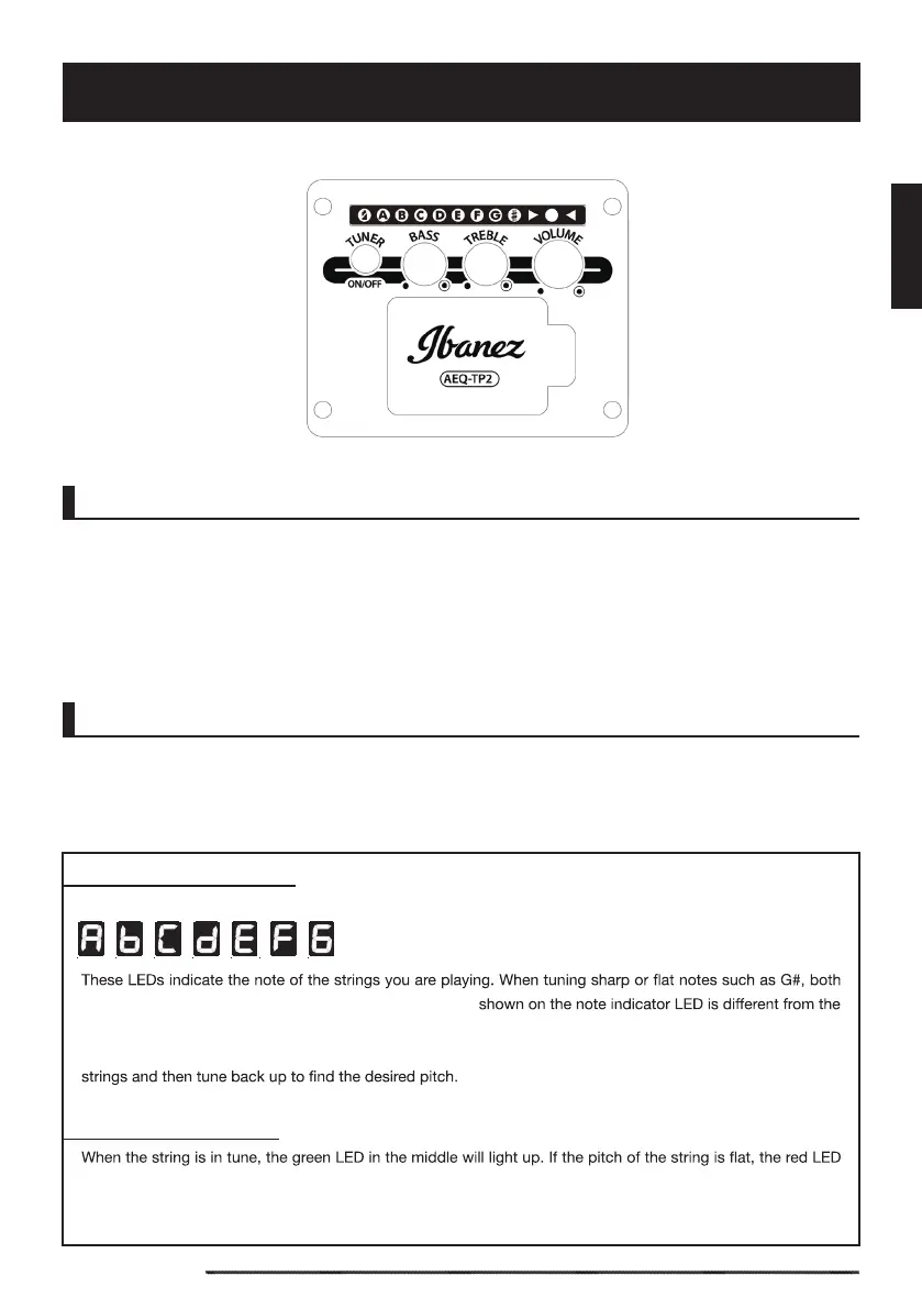on the left will light up. If the pitch of the string is sharp, the red LED on the right will light.