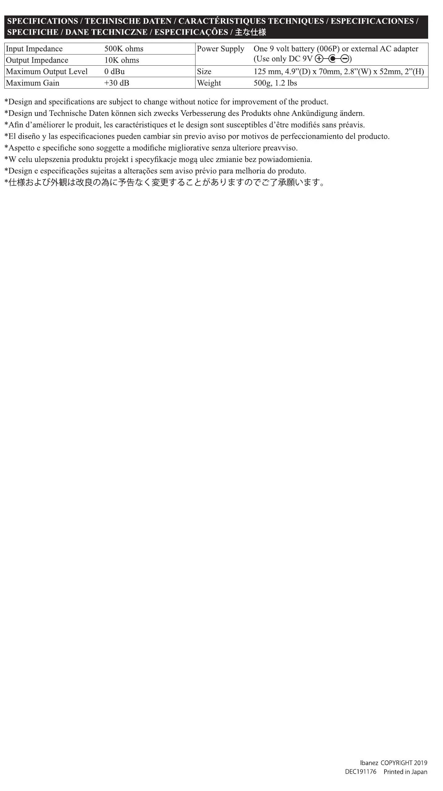 Ibanez COPYRIGHT 2019
