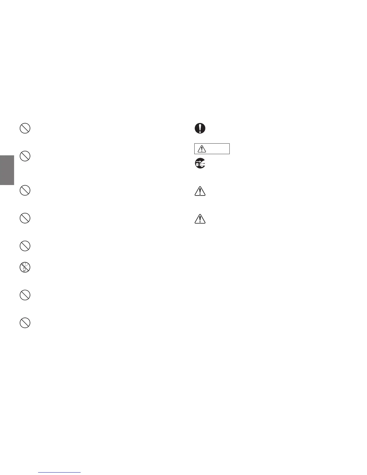 AC100Vの家庭用電源以外では、絶対に使用しないでください。火災