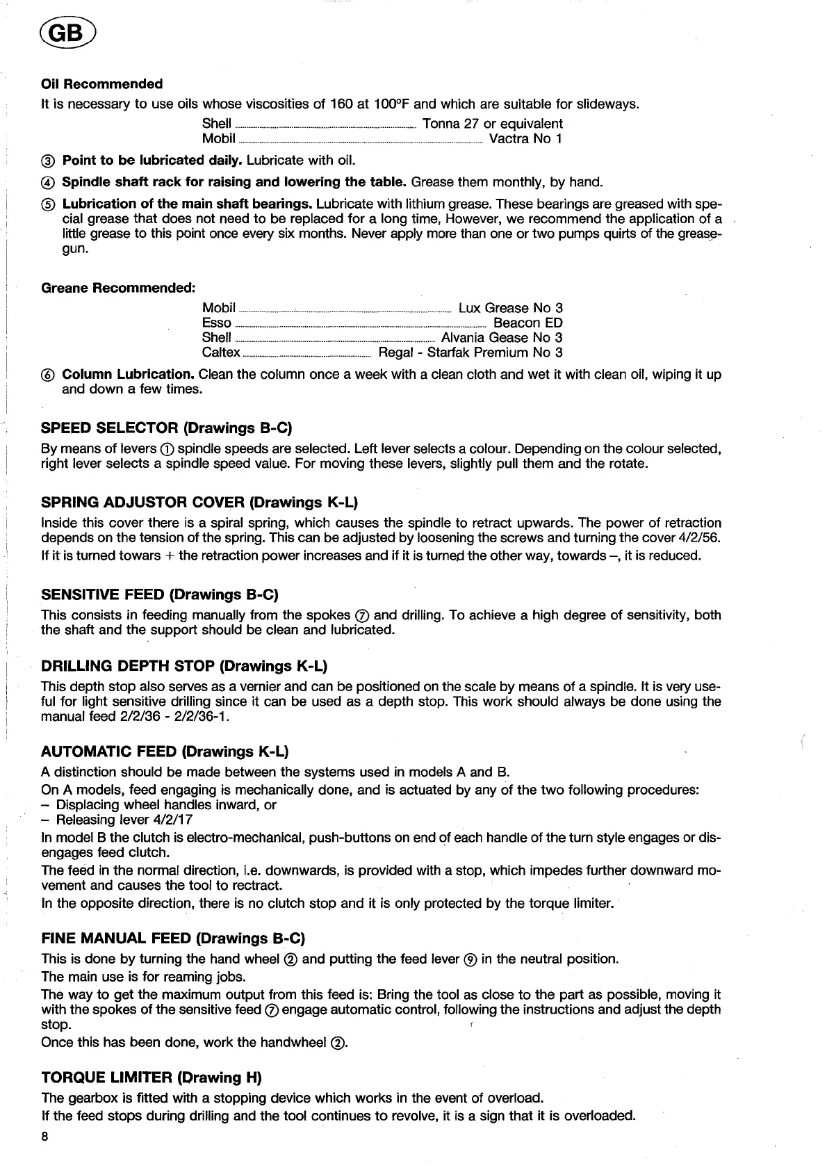 Ibarmia A-40 - Machine Components and Functions; Lubricant Recommendations; Speed Selector and Feed Systems; Depth Stop and Torque Limiter