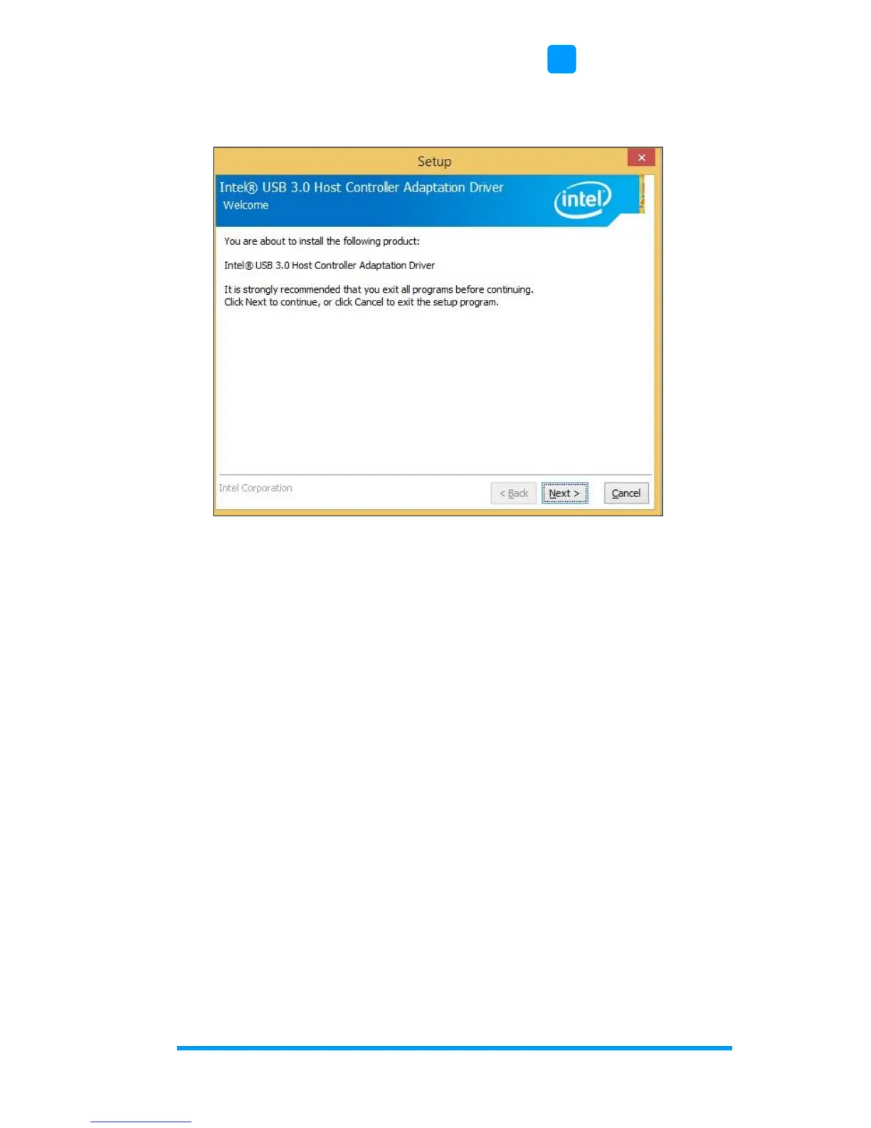 3. When the Welcome screen to the InstallShield Wizard for Intel