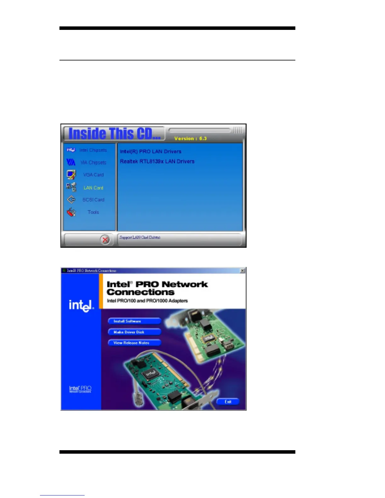 drivers selection. Click on Intel(R) PRO LAN Drivers.