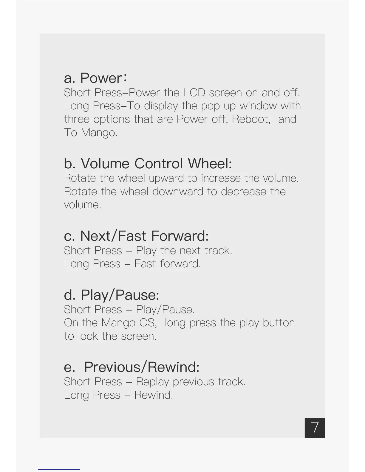 On the Mango OS, long press the play button