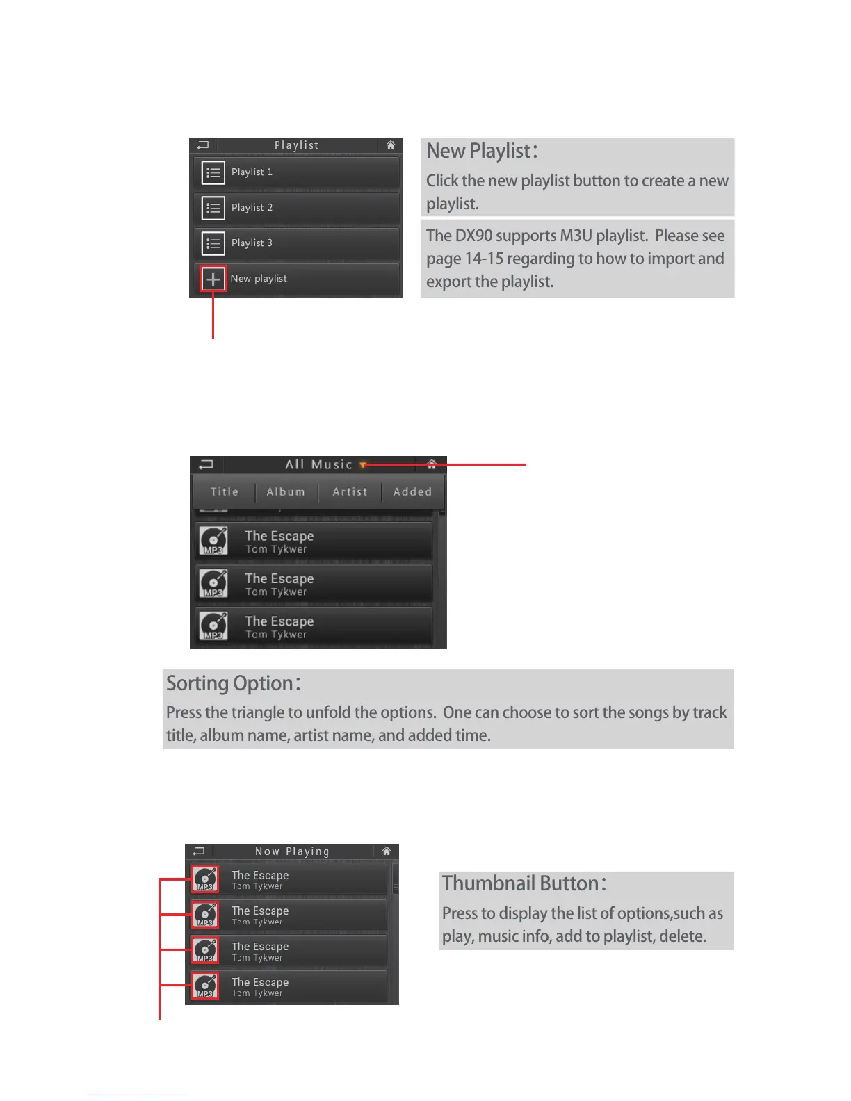 The DX90 supports M3U playlist. Please see