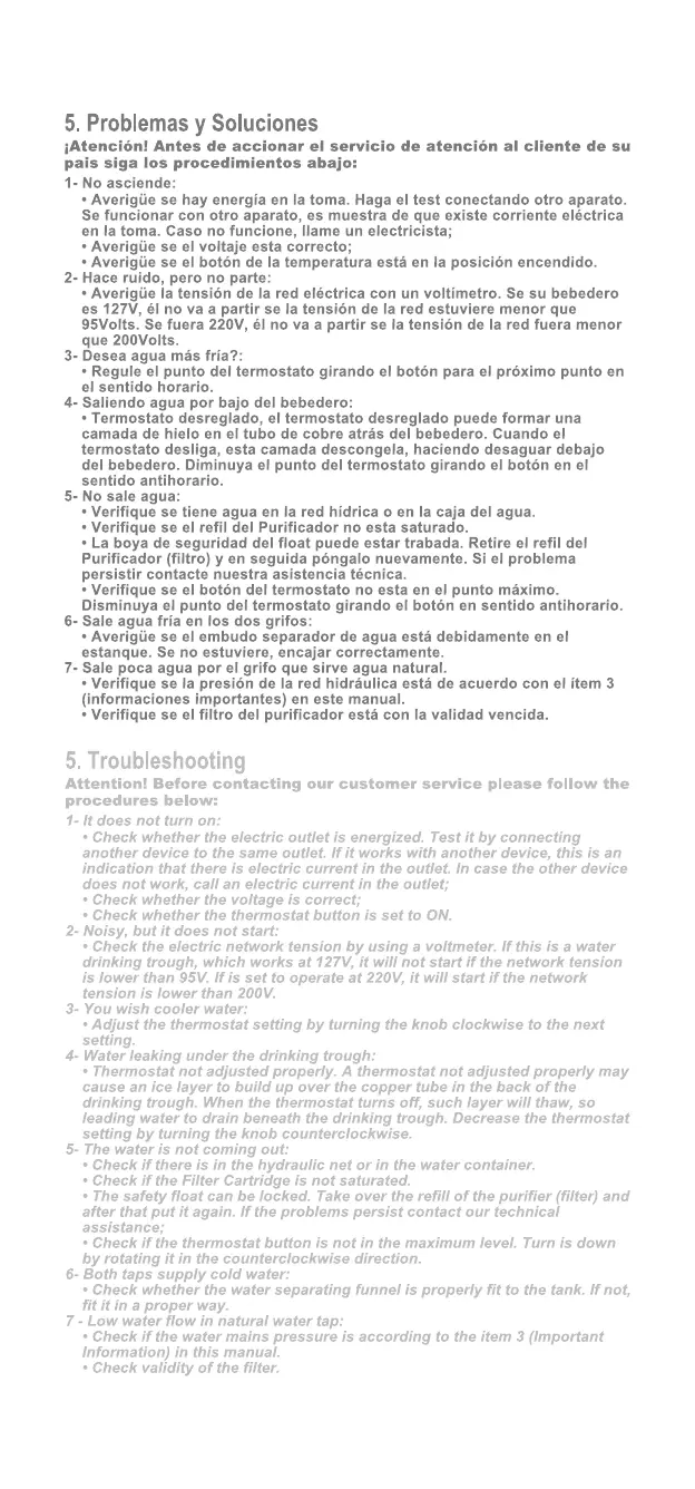 IBBL FR-600 - 5. Troubleshooting; Unit Does Not Turn On; Noisy Operation, Unit Does Not Start; Desire for Cooler Water