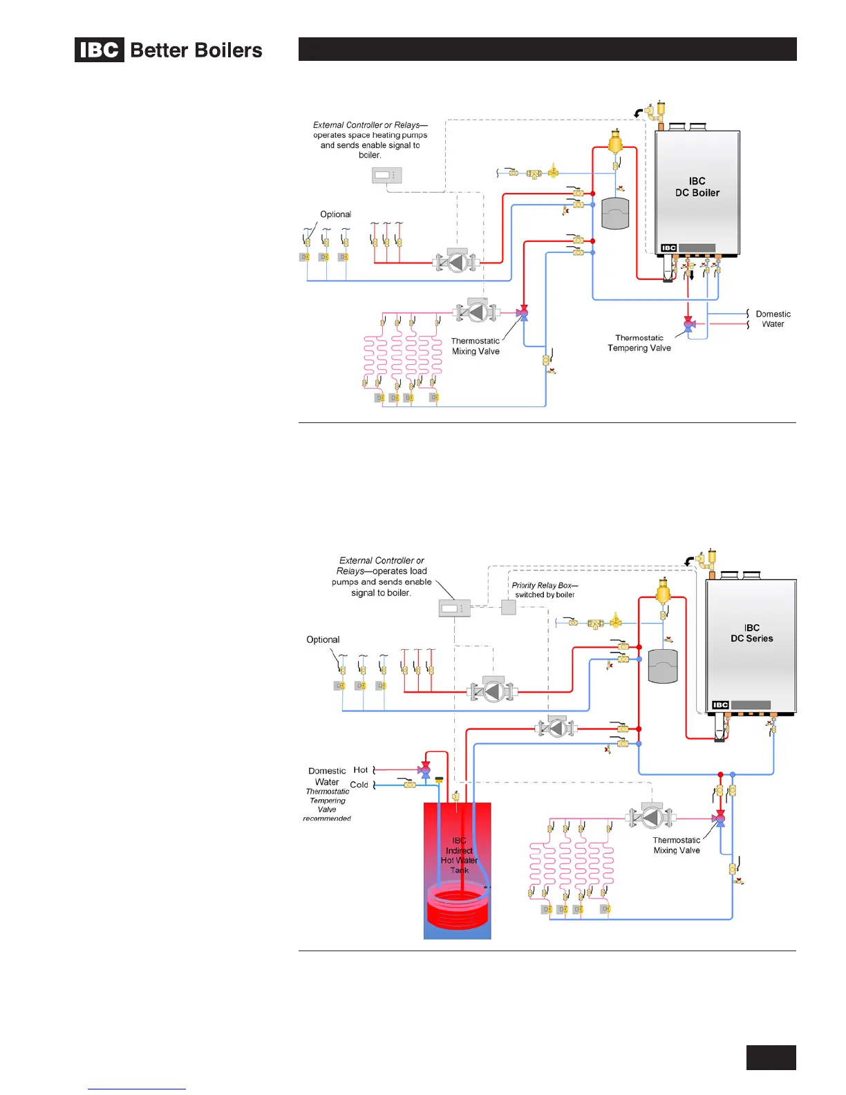 Figure 28: Typical two temperature space heating piping concept with indirect domestic