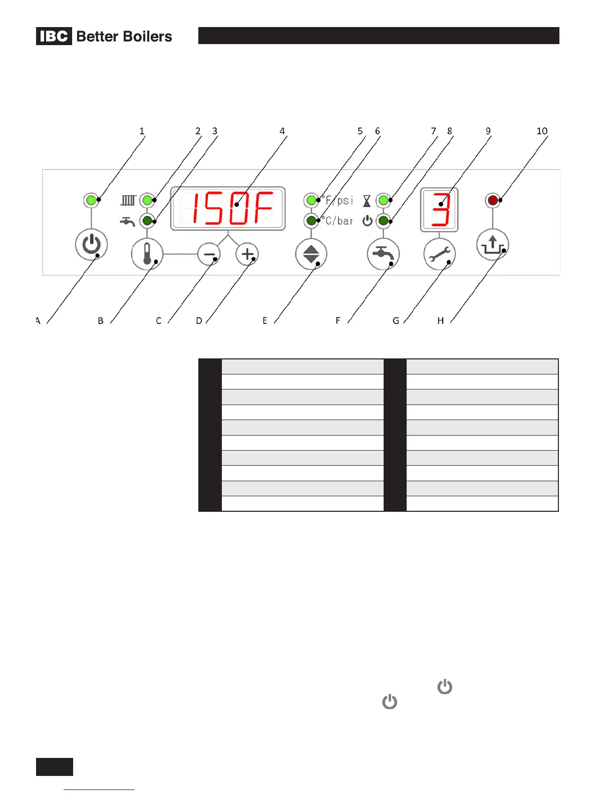 is “ON”, the green LED above the On/Off button will be on. When the boiler is