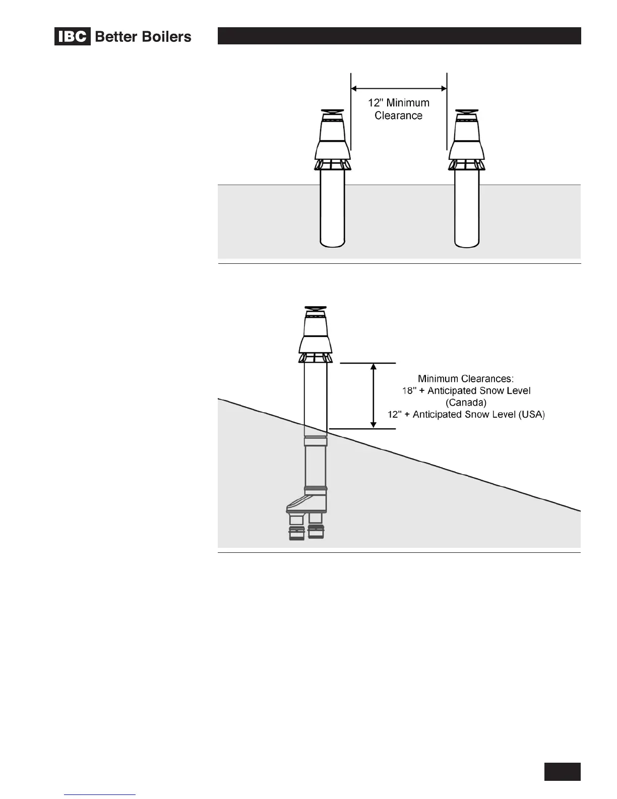 • The exhaust outlet is to be placed so as to reach 24" minimum above the