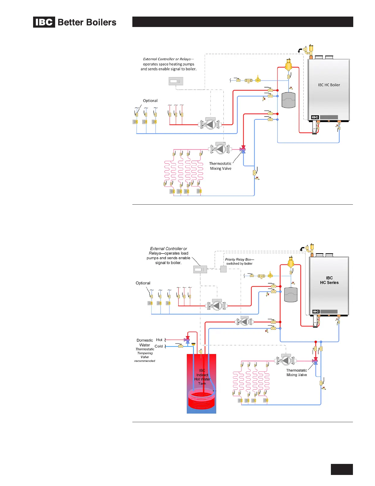 Figure 28: Typical two temperature space heating piping concept with indirect domestic