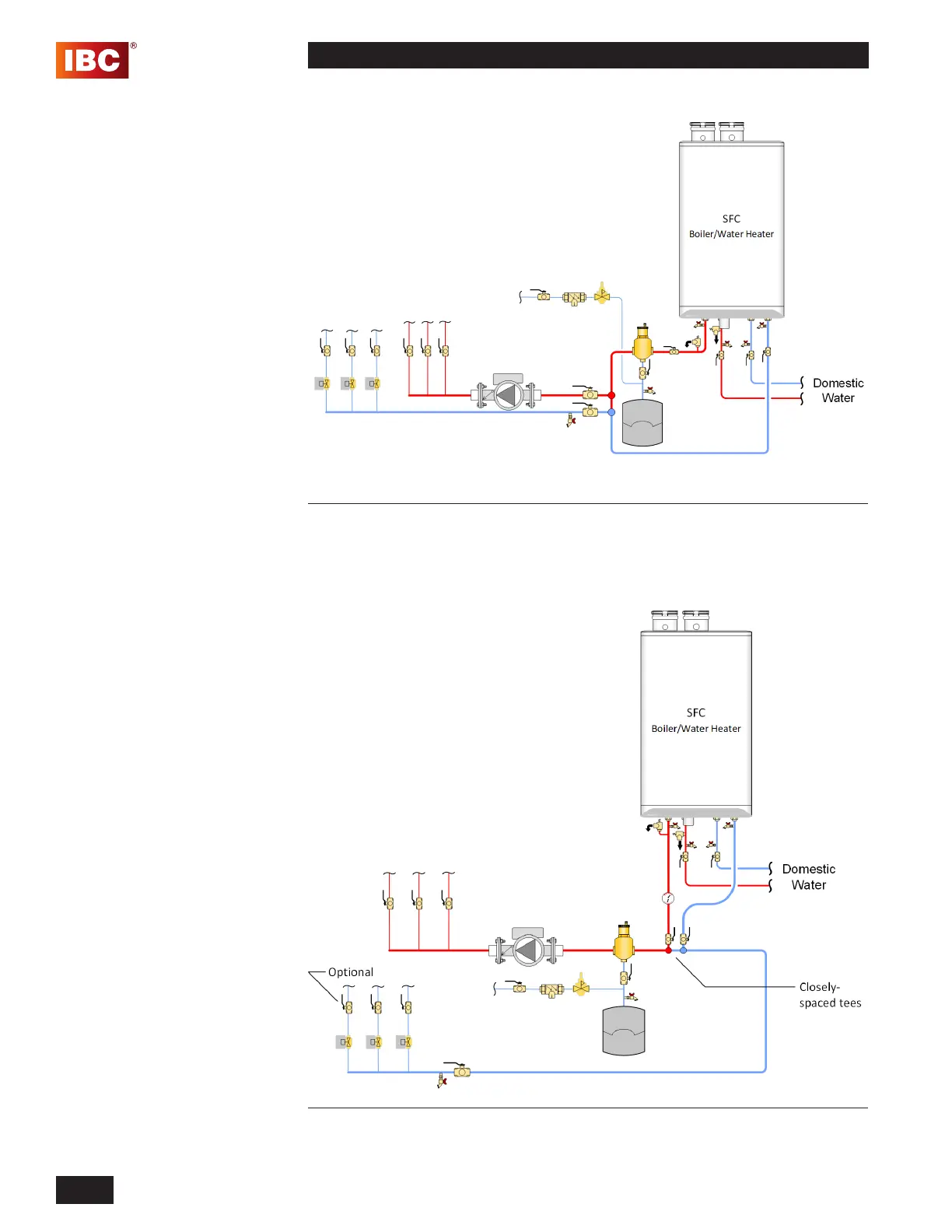 Figure 26: Typical one temperature space heating piping concept with direct domestic hot