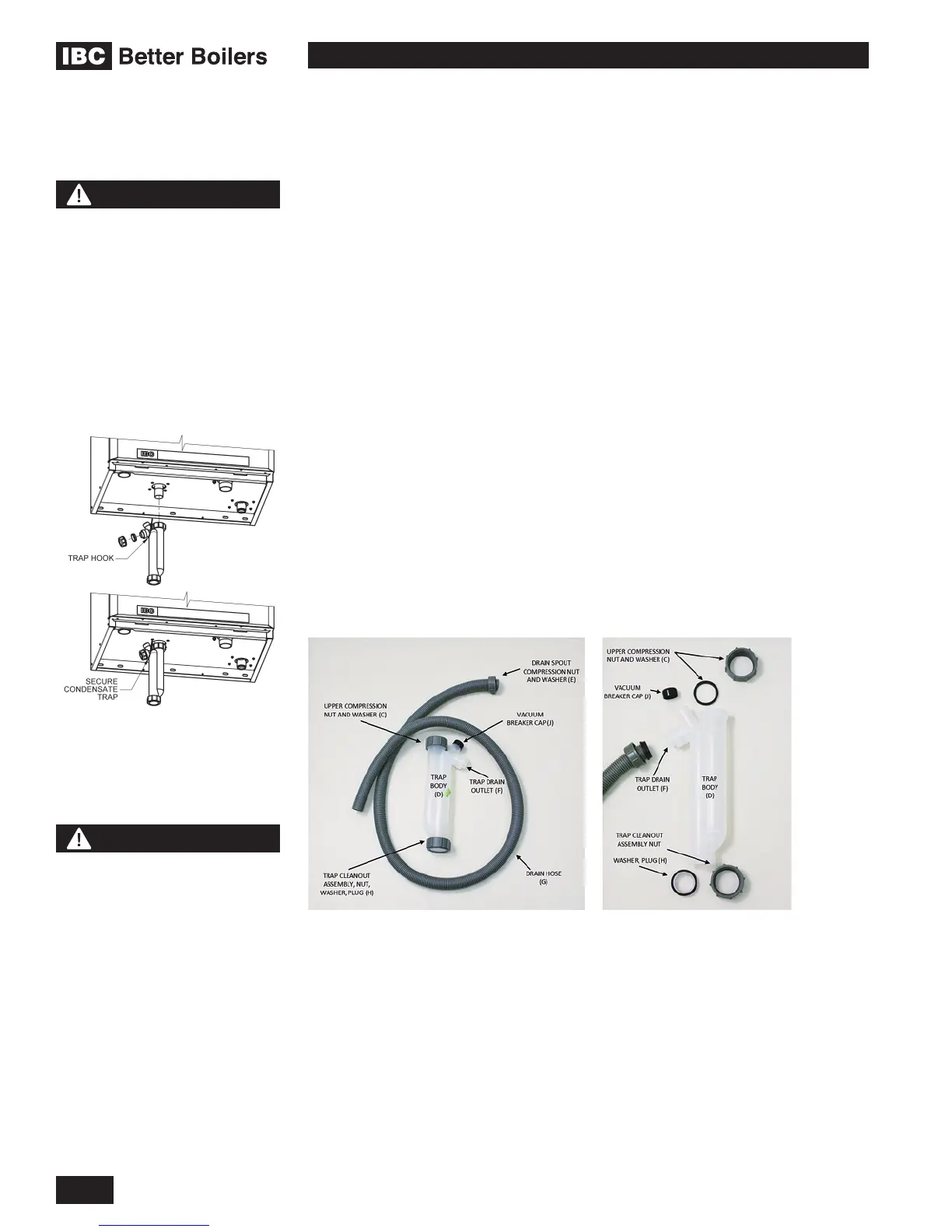 Washer (C) and slide over Boiler Drain Outlet (A). Insert one Trap Hook barb