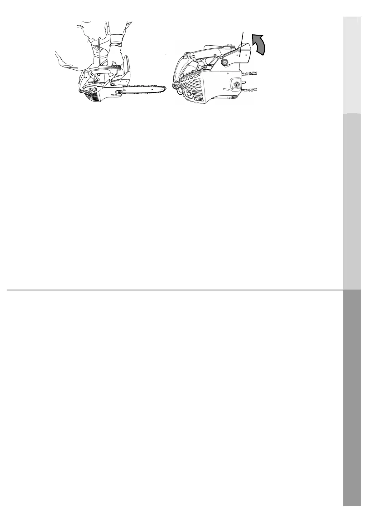 8. Une fois le moteur allumé, tirez le protège-main avant pour relâcher le frein de la chaîne.