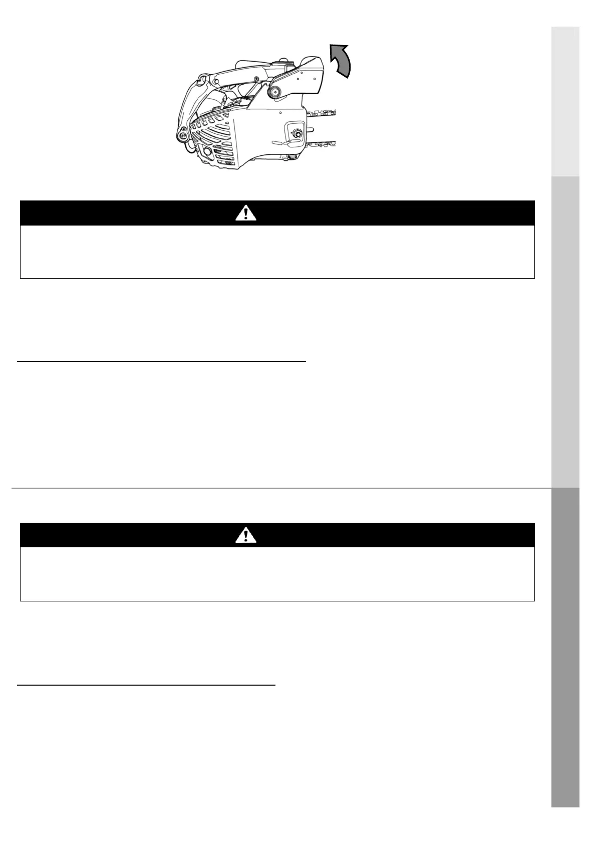 • Lorsque vous poussez vers l’avant le protège-main avant, le frein de la chaîne s’active immédiatement pour arrêter la rotation.