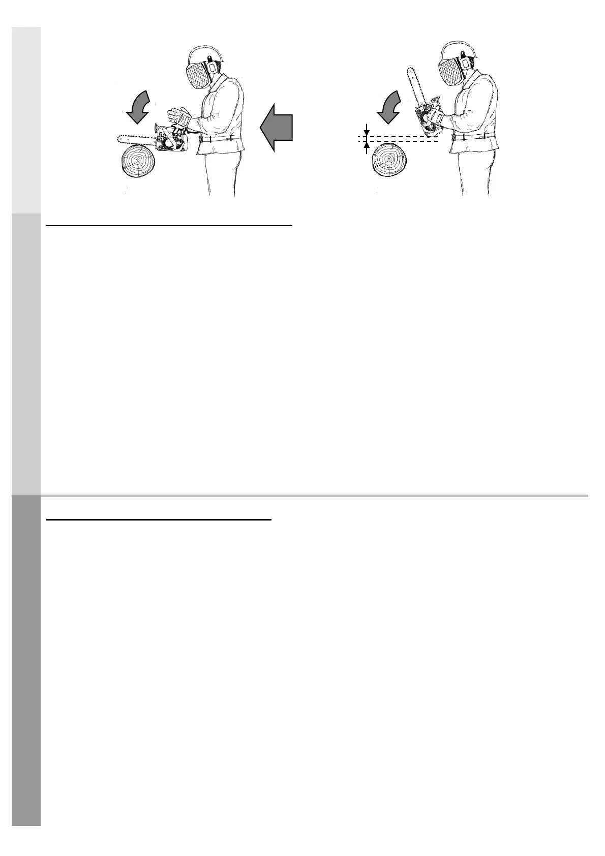 3. Softly detach the left hand from the front handle, and touch the end of the guide bar against the log or the like placed below so
