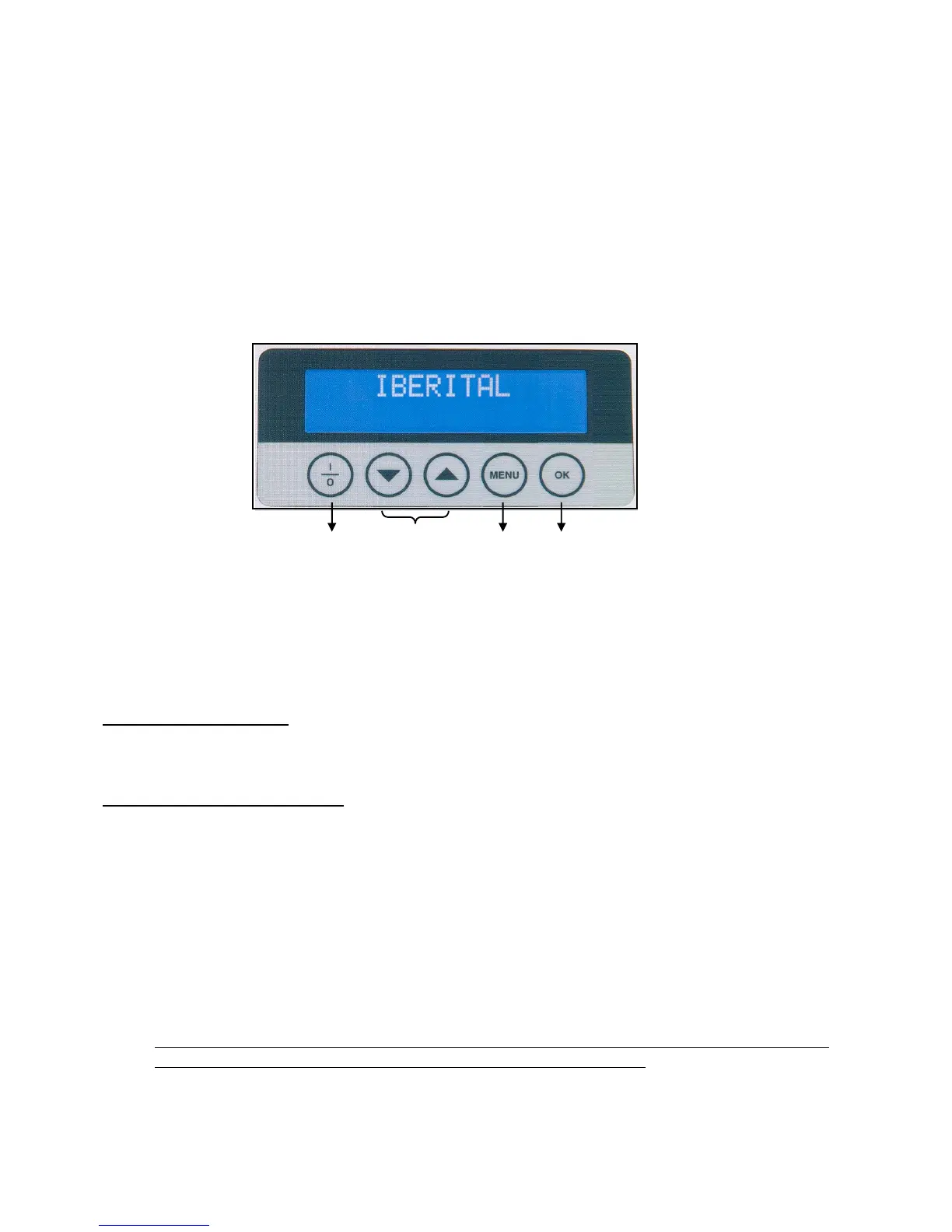 (the display shows OFF ant TIME), then press the MENU button during 15 seconds and will enter in the