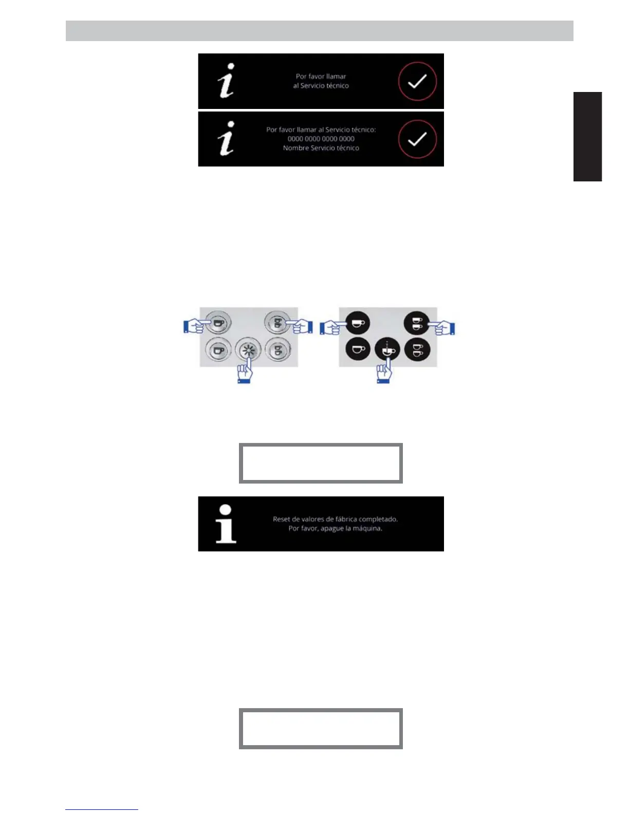 2.10.- RESET CENTRALITA MÁQUINA CON DISPLAY (no disponible en todos los modelos)