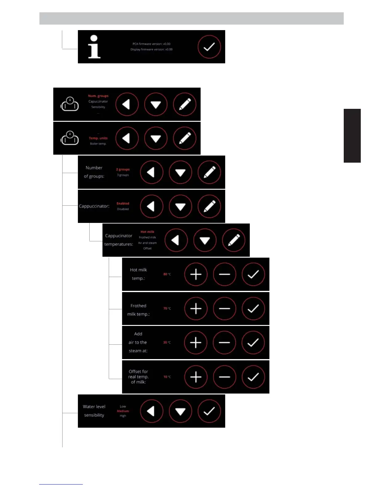 - COFFEE BOILER CONFIG: Through this menu we can edit the settings and visualisation for all