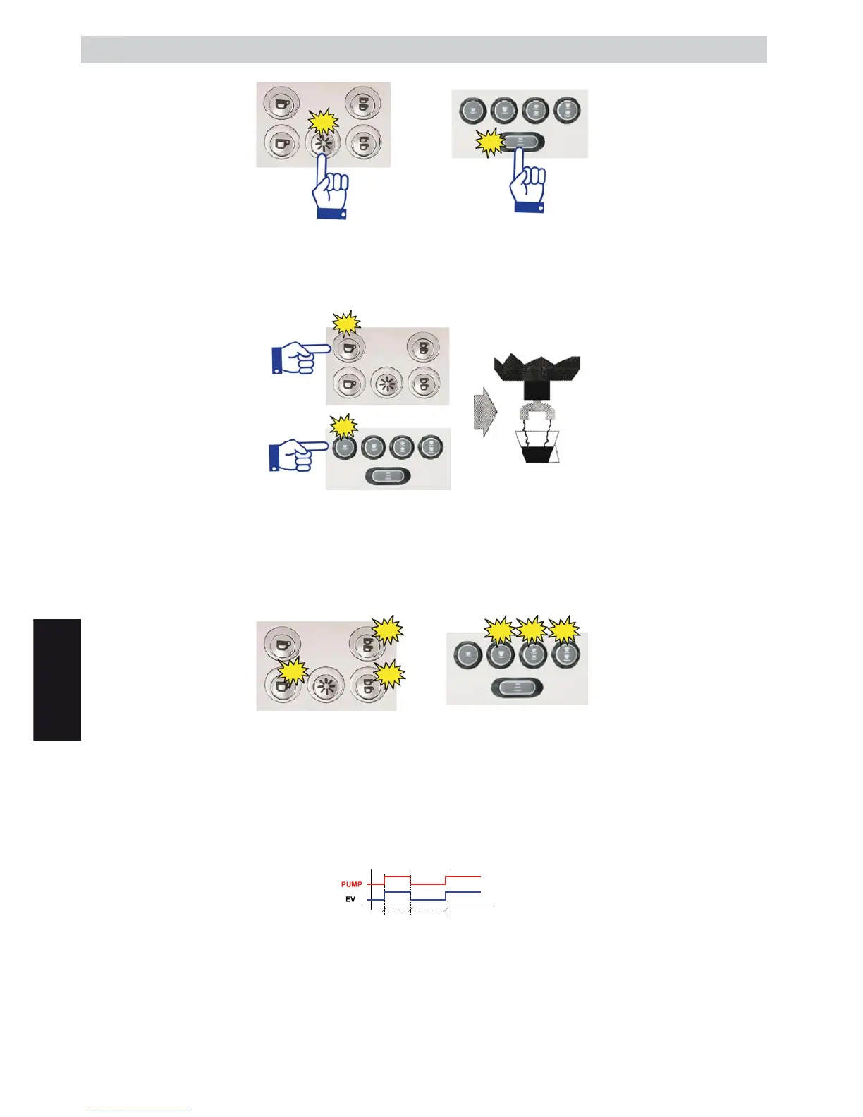 в положение «0», нажать кнопку «1 эспрессо» и, удерживая ее, перевести главный переключатель в